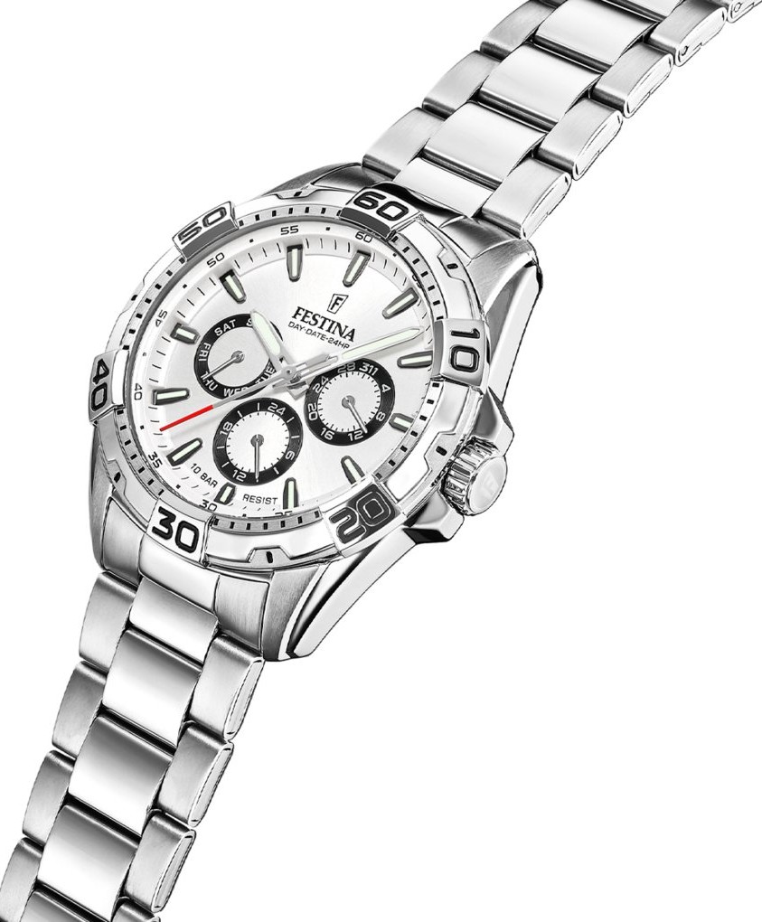 Festina Multifunction 20623/1 sú pánske klasické multifunkčné batériové hodinky na oceľovom náramku s preklápacou sponou. Puzdro z nerezovej ocele má priemer 44,7 milimetra. Strieborný číselník s ukazovateľom dátumu, dňa v týždni a 24hodinovým formátom zobrazenia času je chránený odolným minerálnym sklíčkom. Ručičky a indexy disponujú luminiscenčným náterom, ktorý po nasvietení uľahčuje čitateľnosť za zhoršených svetelných podmienok. Hodinky poháňa quartzový strojček Miyota 6P29 s presnosťou ±20 sekúnd za mesiac. S vodotesnosťou 10 ATM sú hodinky vhodné na plávanie a šnorchlovanie.