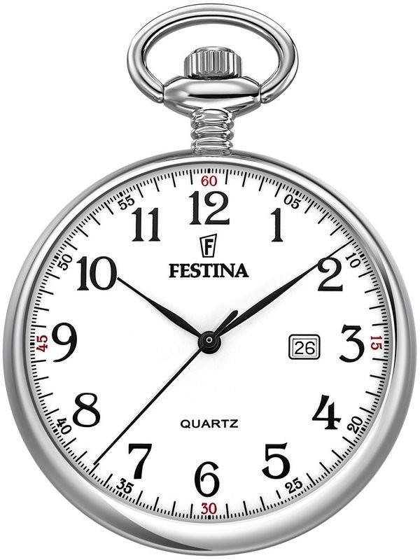Festina Pocket 2019/1 sú pánske batériové vreckové hodinky s oceľovým puzdrom s priemerom 42,55 milimetra. Prehľadný biely číselník s ukazovateľom dátumu na tretej hodine je chránený tvrdeným plexi sklíčkom. Pohon hodiniek zaisťuje quartzový strojček 2115 s presnosťou ±20 sekúnd za mesiac.