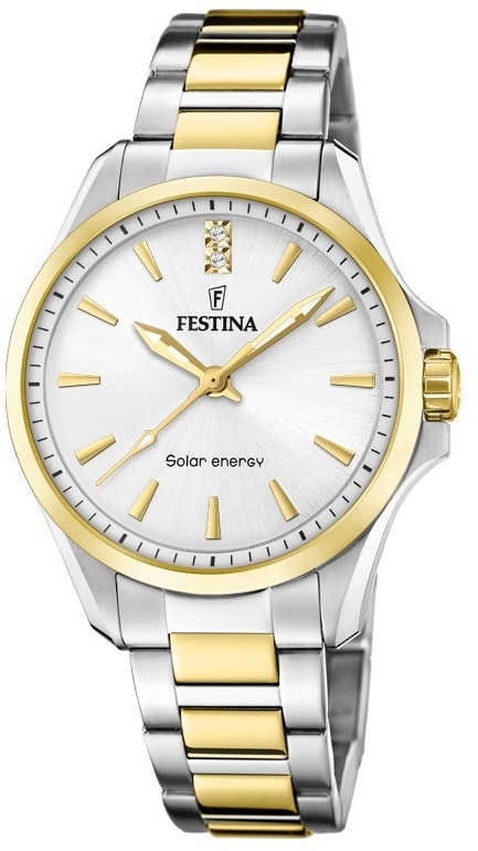 Festina Solar Energy 20655/2 sú dámske klasické hodinky na oceľovom náramku s preklápacou sponou. Puzdro z nerezovej ocele má priemer 34 milimetrov. Stredové dieliky náramku, luneta a korunka sú opatrené PVD úpravou vo farbe zlata. Strieborný číselník zdobený 2 zirkónmi na 12. hodine je chránený odolným minerálnym sklíčkom a jeho krása vyniká najmä pod priamym svetlom, kedy môžeme sledovať hru farieb perlete. Ručičky disponujú luminiscenčným náterom, ktorý po nasvietení uľahčuje čitateľnosť za zhoršených svetelných podmienok. Pohon hodiniek zaisťuje batériový strojček Miyota 2070 so solárnym napájaním a presnosťou ±20 sekúnd za mesiac. Vodeodolnosť hodiniek činí 5 ATM a sú odolné proti dažďu a pri sprchovaní.