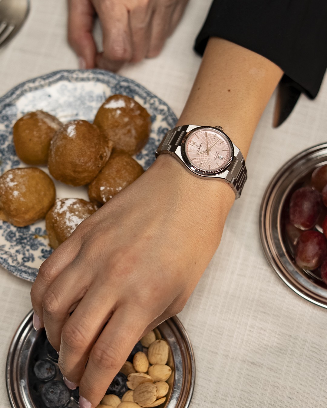 Festina Swiss Made 20052/3 sú dámske batériové hodinky v klasickom štýle na oceľovom náramku s motýlikovou sponou. Puzdro z nerezovej ocele má priemer 35 milimetrov. Ružový štrukturovaný číselník s ukazovateľom dátumu na šiestej hodine je chránený odolným zafírovým sklíčkom a jeho krása vyniká najmä pod priamym svetlom, kedy môžeme pozorovať hru farieb perlete. Ručičky a niektoré indexy majú luminiscenčný náter, ktorý po nasvietení uľahčuje čitateľnosť za zhoršených svetelných podmienok. Chod hodiniek zaisťuje quartzový strojček Ronda 705. S vodotesnosťou 10 ATM sú hodinky vhodné na plávanie či šnorchlovanie.