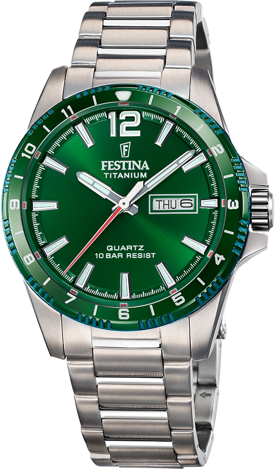 Festina Titanium 20698/3 sú pánske klasické batériové hodinky na titánovom náramku s preklápacou sponou. Puzdro z titánu má priemer 43 milimetrov. Šedý číselník s efektom slnečného brusu a ukazovateľom dátumu a dňa v týždni je chránený odolným minerálnym sklíčkom. Ručičky a indexy disponujú luminiscenčným náterom, ktorý po nasvietení uľahčuje čitateľnosť za zhoršených svetelných podmienok. Hodinky poháňa quartzový strojček Miyota GR02. S vodotesnosťou 10 ATM sú hodinky vhodné na plavanie či šnorchlovanie.