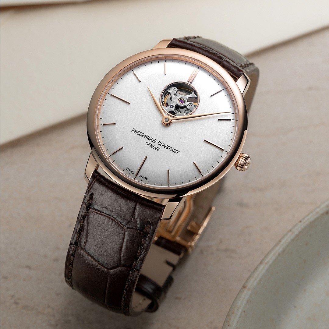 Frederique Constant je švajčiarska hodinárska manufaktúra so sídlom oblasti Plan-les-Ouates v Ženeve, svetovom epicentre prestížnej hodinárskej výroby. Založená bola v roku 1988 manželským párom z Holandska - Alettou a Peterom Stasom, ktorí sa rozhodli založiť hodinársku značku s cieľom ponúkať kvalitné švajčiarske hodinky za dostupnú cenu a sprístupniť tak luxusné hodinky s označením Swiss Made širšej verejnosti. Napriek svojej krátkej histórii sa značke podarilo veľmi rýchlo dosiahnuť veľkú popularitu a uznanie. Štyri roky po založení značky, v roku 1992, bola predstavená prvá kolekcia hodiniek so švajčiarskym strojčekom a o dva roky neskôr manufaktúra nadviazala predstavením prvých hodiniek Heart Beat, teda výrezom číselníka, ktorý poodhaľuje strojček hodiniek a postupom času sa stáva pre značku ikonickým prvkom.