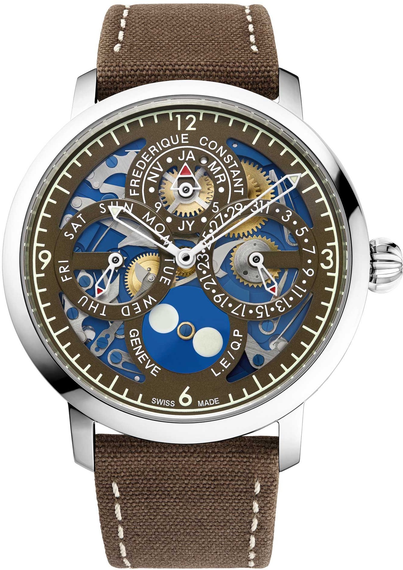 Frederique Constant Slimline Naked Watchmaker Limited Edition FC-775TNW4S6 sú pánske automatické hodinky na hnedom textilnom remienku s bielym prešívaním a tŕňovou sponou. Ide o limitovanú edíciu v počte 99 kusov pre celý svet pripravenú v spolupráci so spoločnosťou The Naked Watchmaker, ktorej spoluzakladateľ je známy britský hodinár Peter Speake. Puzdro z nerezovej ocele má priemer 42 milimetrov, zdobenú korunku a priehľadné viečko, ktoré umožňuje pohľad na jednotlivé komponenty strojčeka rovnako ako hnedý skeletónový číselník chránený odolným zafírovým sklom. Biele hodinové indexy dopĺňajú skeletované rúčky pokryté luminiscenčným náterom Super-LumiNova®, ktorý garantuje perfektnú čitateľnosť za zhoršených svetelných podmienok. Pohon hodiniek zaisťuje manufaktúrny mechanický strojček FC-775 s automatickým náťahom a rezervou chodu približne 38 hodín. Tento strojček s funkciou hackingu je možné v prípade potreby naťahovať aj ručne pomocou korunky. Hodinky disponujú funkciou indikácie mesačnej fázy a večným kalendárom, ktorý je považovaný za vrchol hodinárskeho umenia ukazujúci svojmu užívateľovi dátum, deň v týždni aj mesiac bez nutnosti korekcie až do roku 2100 a je možné ho ľahko nastaviť pomocou tlačidiel na bokoch puzdra. S vodotesnosťou 3 ATM sú hodinky odolné proti vlhkosti a dažďu.