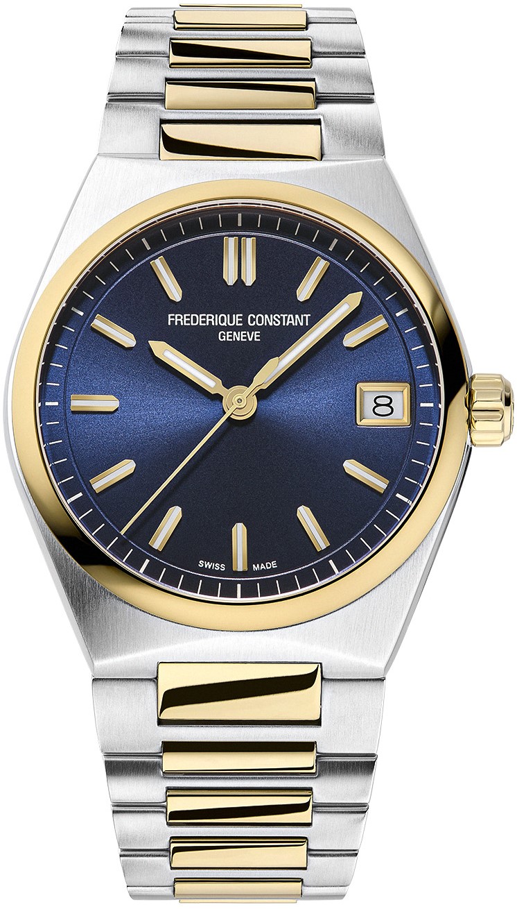 Frederique Constant Highlife Ladies Quartz FC-240N2NH3B sú dámske batériové hodinky na integrovanom oceľovom bicolor náramku s čiastočnou PVD úpravou v zlatej farbe a motýlikovou sponou. Puzdro z nerezovej ocele má priemer 31 milimetrov, signovanú korunku a vonkajšiu lunetu s PVD úpravou vo farbe zlata. Tieto univerzálne hodinky v klasickom dizajne využijete na každodenné nosenie. Tmavomodrý číselník s efektom slnečného brusu je chránený odolným zafírovým sklom. Aplikované hodinové indexy sú spoločne s ručičkami pokryté luminiscenčným náterom Super-LumiNova®, ktorý garantuje perfektnú čitateľnosť za zhoršených svetelných podmienok. Pohon hodiniek zaisťuje spoľahlivý quartzový strojček FC-240 (základom je strojček Ronda 515). Hodinky disponujú funkciou ukazovateľa dátumu a s vodotesnosťou 5 ATM sú odolné proti dažďu a pri sprchovaní. Súčasťou balenia je náhradný gumený remienok.