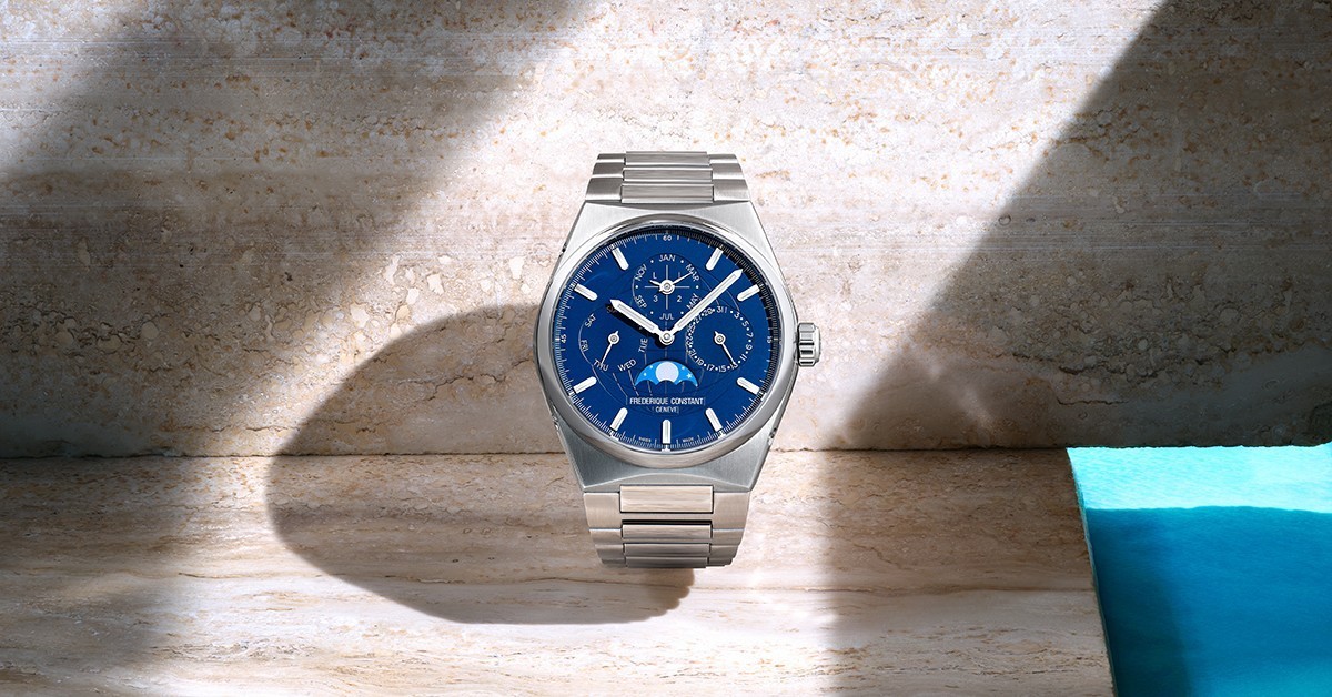 Frederique Constant Highlife Perpetual Calendar FC-775N4NH6B sú pánske automatické hodinky na oceľovom náramku v kombinácii brusu a lesku s motýlikovou sponou. Puzdro z nerezovej ocele má priemer 41 milimetrov, signovanú korunku a priehľadné viečko ponúkajúce pohľad na strojček dekorovaný ženevskými pruhmi. Modrý číselník so vzorom zemegule je chránený odolným zafírovým sklom. Aplikované hodinové indexy sú spoločne s ručičkami pokryté luminiscenčným náterom Super-LumiNova®, ktorý garantuje perfektnú čitateľnosť za zhoršených svetelných podmienok. Pohon hodiniek zaisťuje manufaktúrny mechanický strojček FC-775 s automatickým náťahom a rezervou chodu približne 38 hodín. Tento strojček s funkciou hackingu je možné v prípade potreby naťahovať aj ručne pomocou korunky. Hodinky disponujú funkciou indikácie mesačnej fázy a večným kalendárom, ktorý je považovaný za vrchol hodinárskeho umenia ukazujúci svojmu užívateľovi dátum, deň v týždni aj mesiac bez nutnosti korekcie až do roku 2100 a je možné ho ľahko nastaviť pomocou tlačidiel na bokoch puzdra. Vodotesnosť hodiniek robí 5 ATM a sú teda odolné proti dažďu a pri sprchovaní. Súčasťou balenia je náhradný gumený remienok modrej farby.