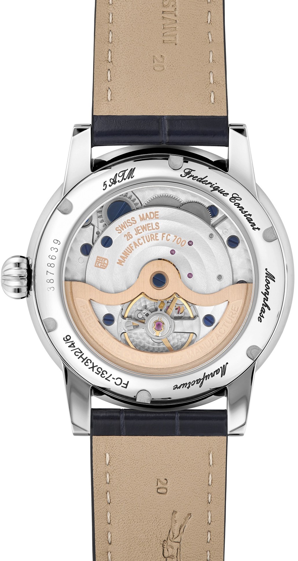 Frederique Constant Manufacture Classic Power Reserve Big Date FC-735N3H6 sú pánske automatické hodinky na modrom remienku z kože aligátora s preklápacou sponou. Puzdro z nerezovej ocele má priemer 40 milimetrov, priehľadné viečko a zdobenú korunku. Tieto elegantné hodinky sú vhodnou voľbou na každodenné nosenie. Tmavomodrý číselník s efektom slnečného brusu, indikáciou dátumu v prevedení big date, ukazovateľom rezervy náťahu a indikáciou mesačnej fázy je chránený odolným zafírovým sklom. Pohon hodiniek zaisťuje manufaktúrny strojček FC-735 s automatickým náťahom a rezervou chodu približne 50 hodín. Tento strojček s funkciou hackingu je možné v prípade potreby naťahovať aj ručne pomocou korunky. Vodotesnosť hodiniek je 5 ATM a sú teda odolné proti dažďu a pri sprchovaní.