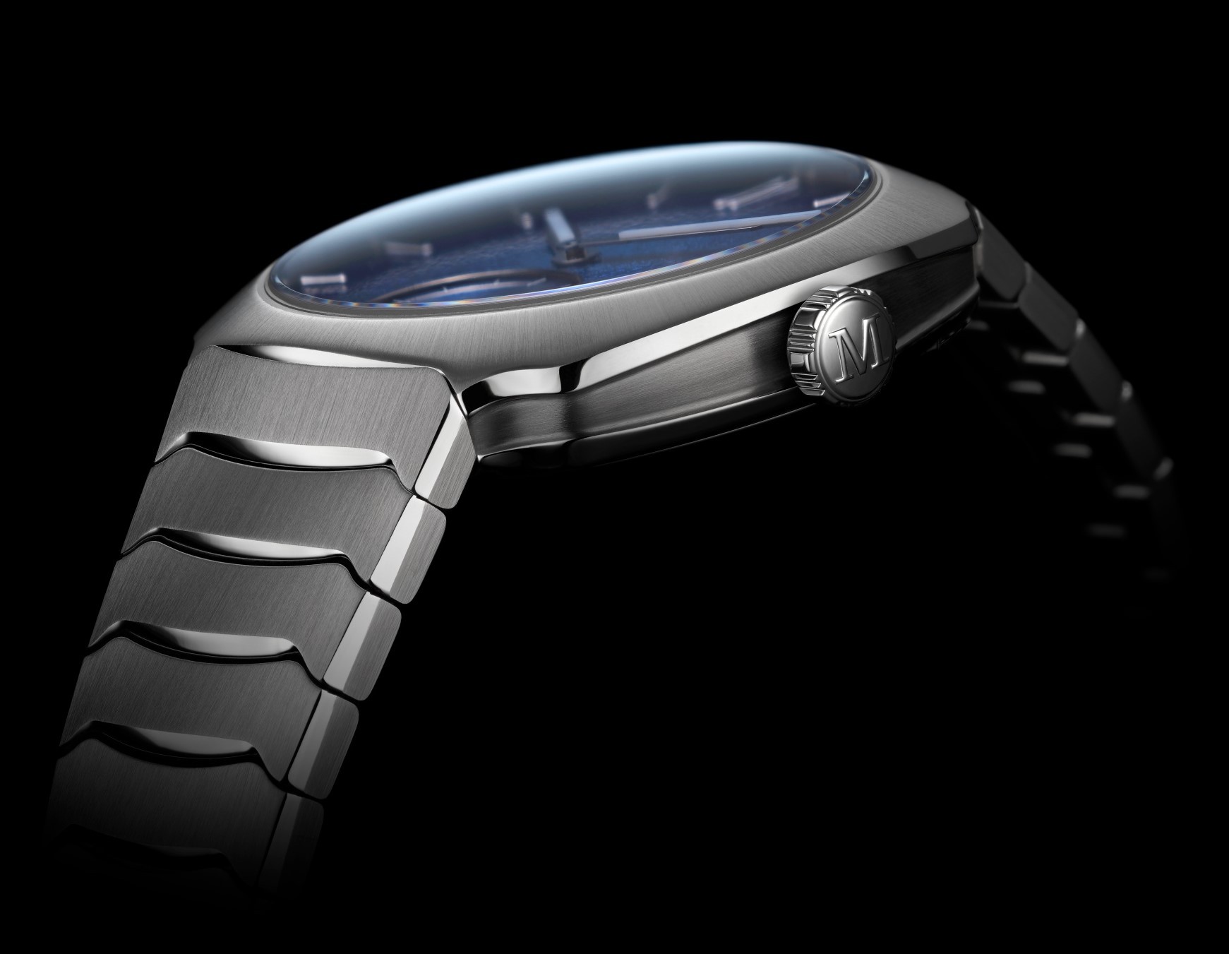 H. Moser & Cie Streamliner Small Seconds Blue Enamel 6500-1200 sú pánske automatické luxusné hodinky na jednoradovom oceľovom integrovanom náramku s brúsenou povrchovou úpravou a motýlikovou sponou. Puzdro z nerezovej ocele má priemer 39 milimetrov a priehľadné viečko. Gradientný modrý texturovaný číselník s mimostrednou sekundovou ručičkou je chránený odolným zafírovým sklom. Ručičky disponujú luminiscenčným náterom Globolight® obsahujúcim Super-LumiNova®, ktorý garantuje perfektnú čitateľnosť za zhoršených svetelných podmienok. Pohon hodiniek zaisťuje mechanický manufaktúrny stroj HMC 500 s automatickým náťahom a rezervou chodu 74 hodín. S vodotesnosťou 12 ATM sú hodinky vhodné pre plávanie a šnorchlovanie.