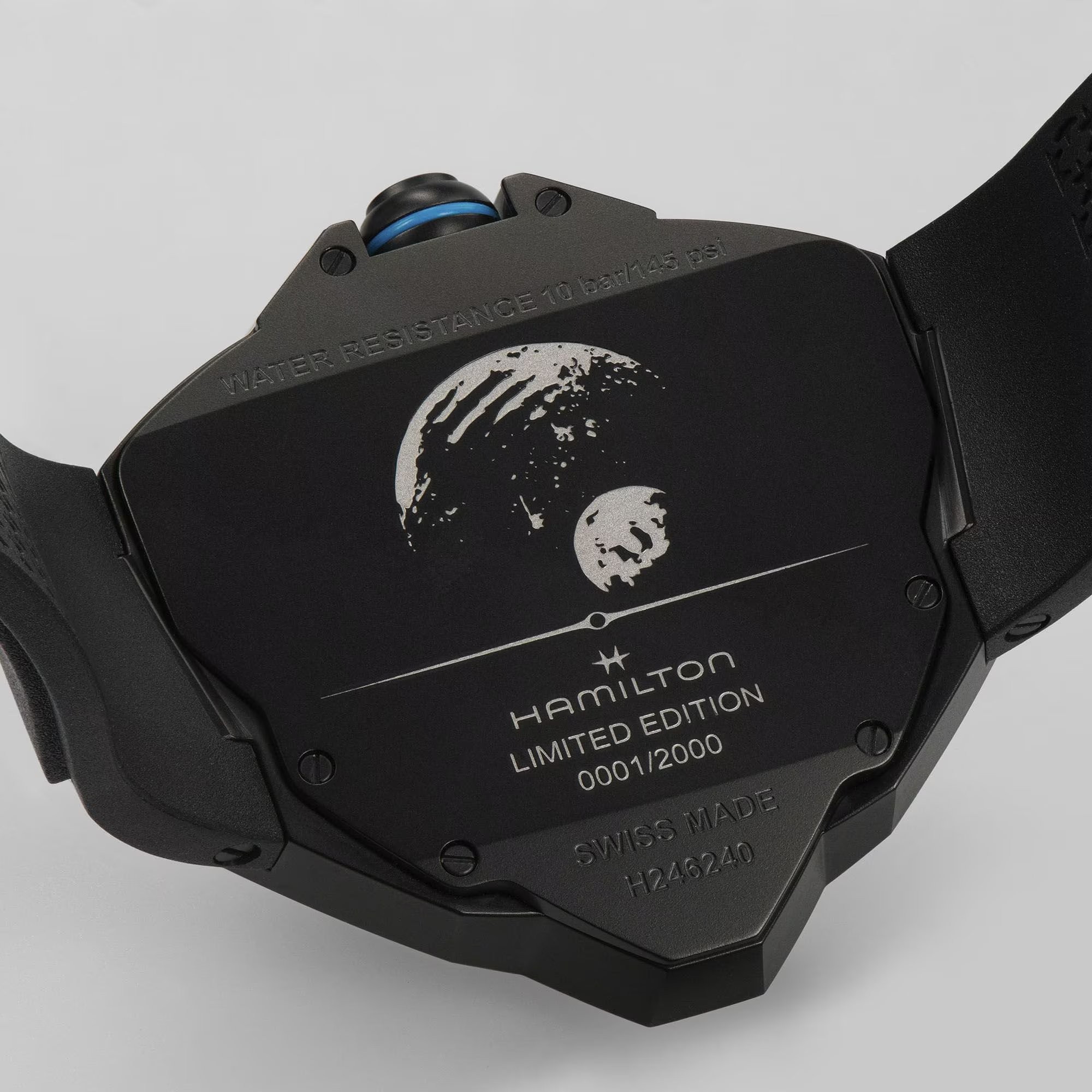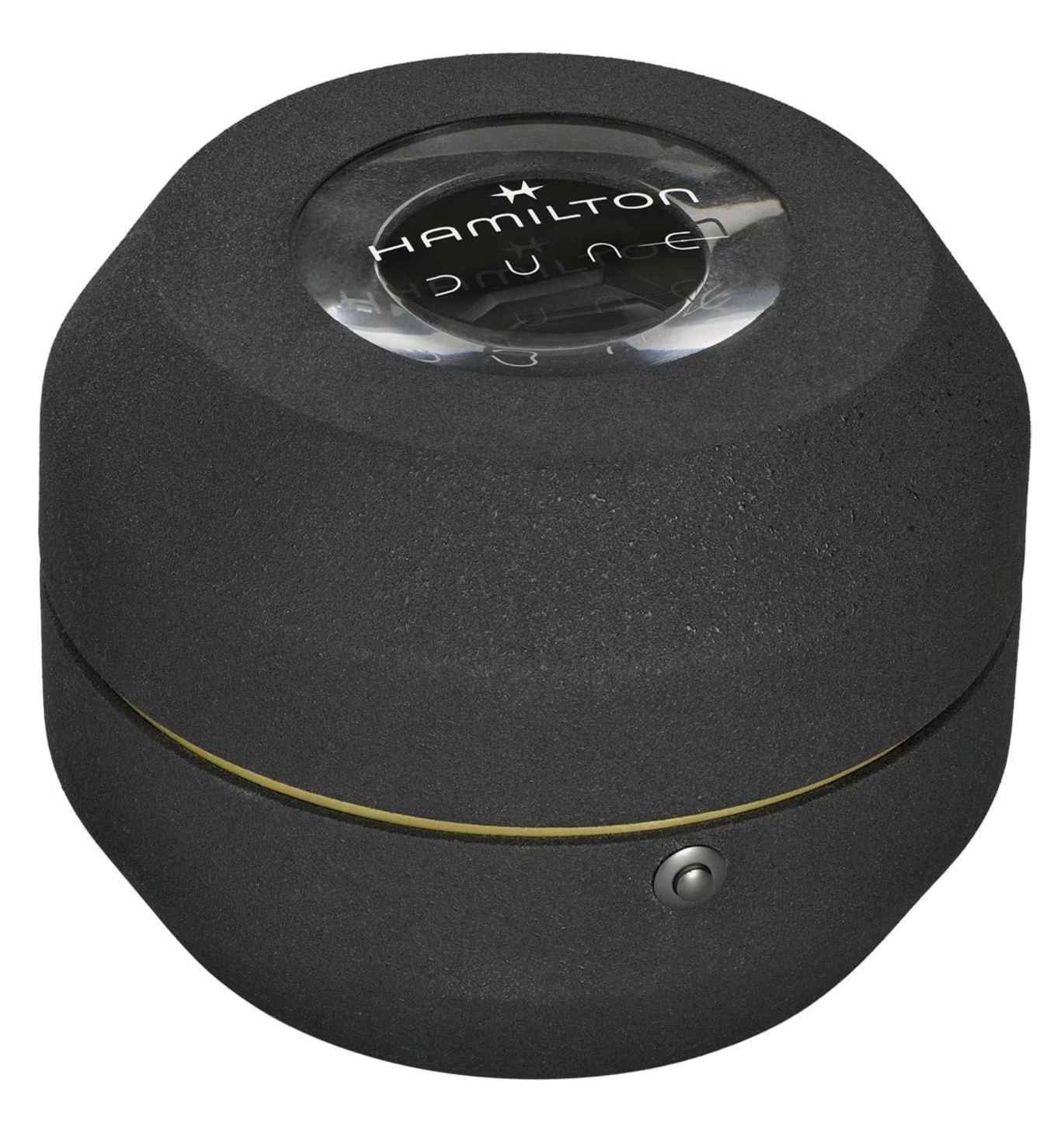Hamilton Ventura Edge Dune Limited Edition H24624330 sú pánske športové batériové hodinky na čiernom kaučukovom remienku s tŕňovou sponou. Ikonické puzdro v tvare trojuholníka z nerezovej ocele s povrchovou PVD úpravou čiernej farby má veľkosť 51 x 47 milimetrov. Čierny digitálny číselník je chránený odolným zafírovým sklíčkom s antireflexnou vrstvou. Modré prvky na číselníku disponujú luminiscenčným náterom Super-LumiNova®, ktorý garantuje perfektnú čitateľnosť za zhoršených svetelných podmienok. Pohon hodiniek zaisťuje quartzový strojček. S vodotesnosťou 10 ATM sú hodinky vhodné na plávanie a šnorchlovanie. Ide o limitovanú edíciu v počte 2000 kusov pre celý svet inšpirovanú zariadením na zápästie z filmu Duna. Sú dodávané v špeciálnej krabičke.