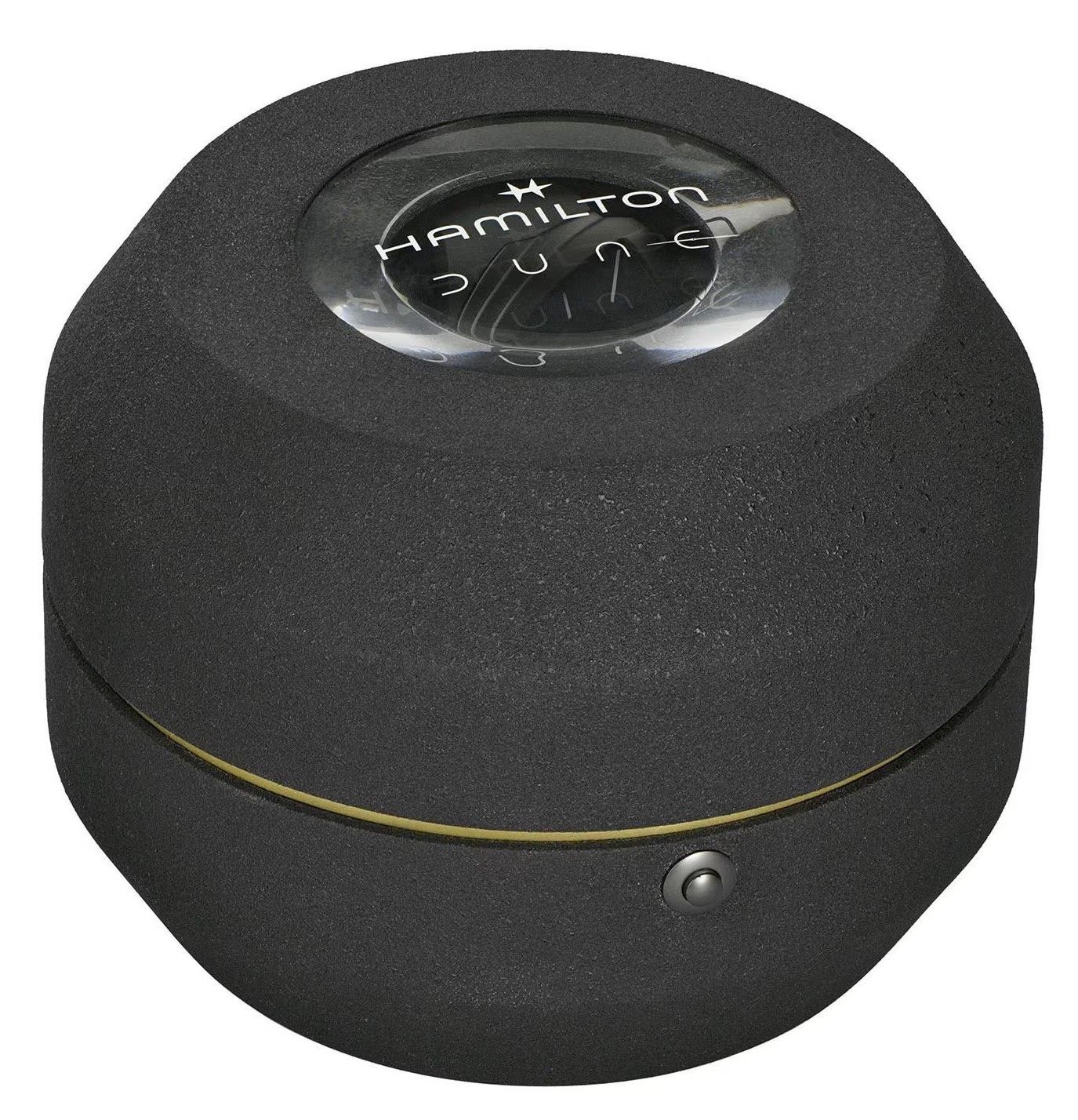 Hamilton Ventura XXL Bright Dune Limited Edition H24614330 sú pánske športové batériové hodinky na čiernom kaučukovom remienku s tŕňovou sponou. Ikonické puzdro v tvare trojuholníka z nerezovej ocele s povrchovou PVD úpravou čiernej farby má veľkosť 52 x 48 milimetrov. Čierny číselník je chránený odolným zafírovým sklíčkom s antireflexnou vrstvou. Modré línie na číselníku disponujú luminiscenčným náterom Super-LumiNova®, ktorý garantuje perfektnú čitateľnosť za zhoršených svetelných podmienok. Pohon hodiniek zaisťuje quartzový strojček F03.105. S vodotesnosťou 5 ATM sú hodinky odolné proti dažďu a pri sprchovaní. Ide o limitovanú edíciu v počte 3000 kusov pre celý svet inšpirovanú zariadením na zápästie z filmu Duna.