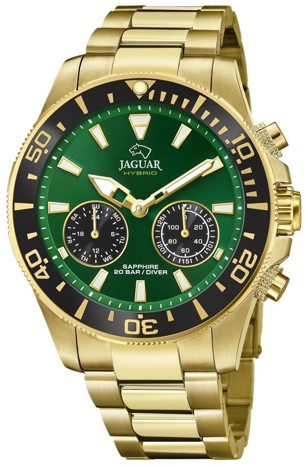 Jaguar Hybrid jsou hodinky spárované s vaším smartphonem pomocí aplikace Jaguar Connected, která je k dispozici pro systémy Android a iOS. Vynikají tím, že na první pohled nepůsobí jako běžné chytré hodinky, avšak mohou nabídnout hned 15 zajímavých užitečných funkcí podrobně popsaných níže. Baterie hodinek má životnost přes dva roky, všechny modely jsou vodotěsné do 200 metrů.