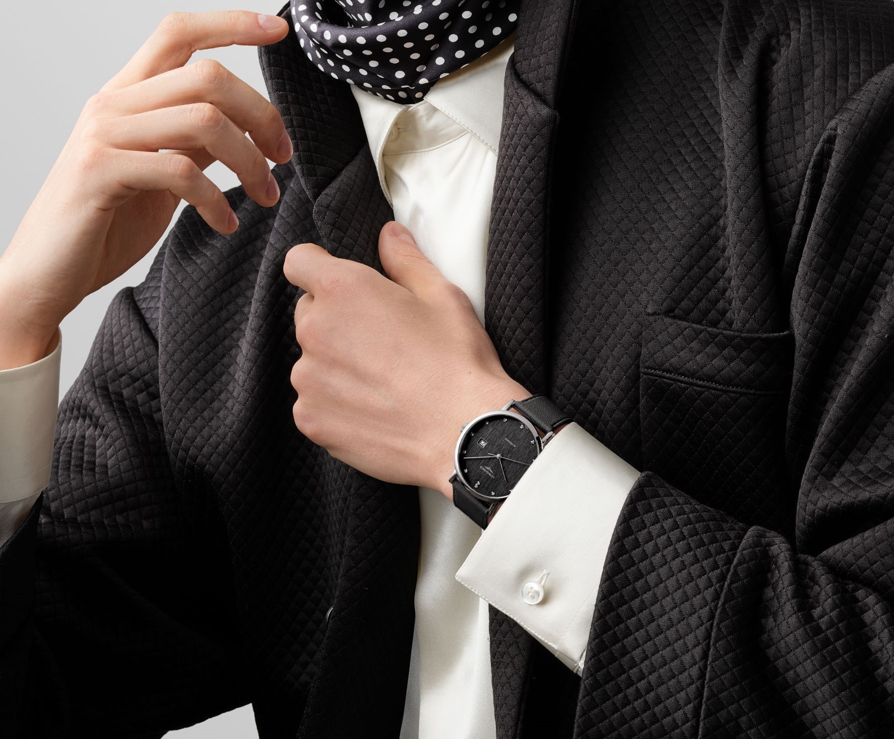 Antracitový číselník zdobí 13 diamantů o hmotnosti 0,037 ct a čistotě VS-SI.