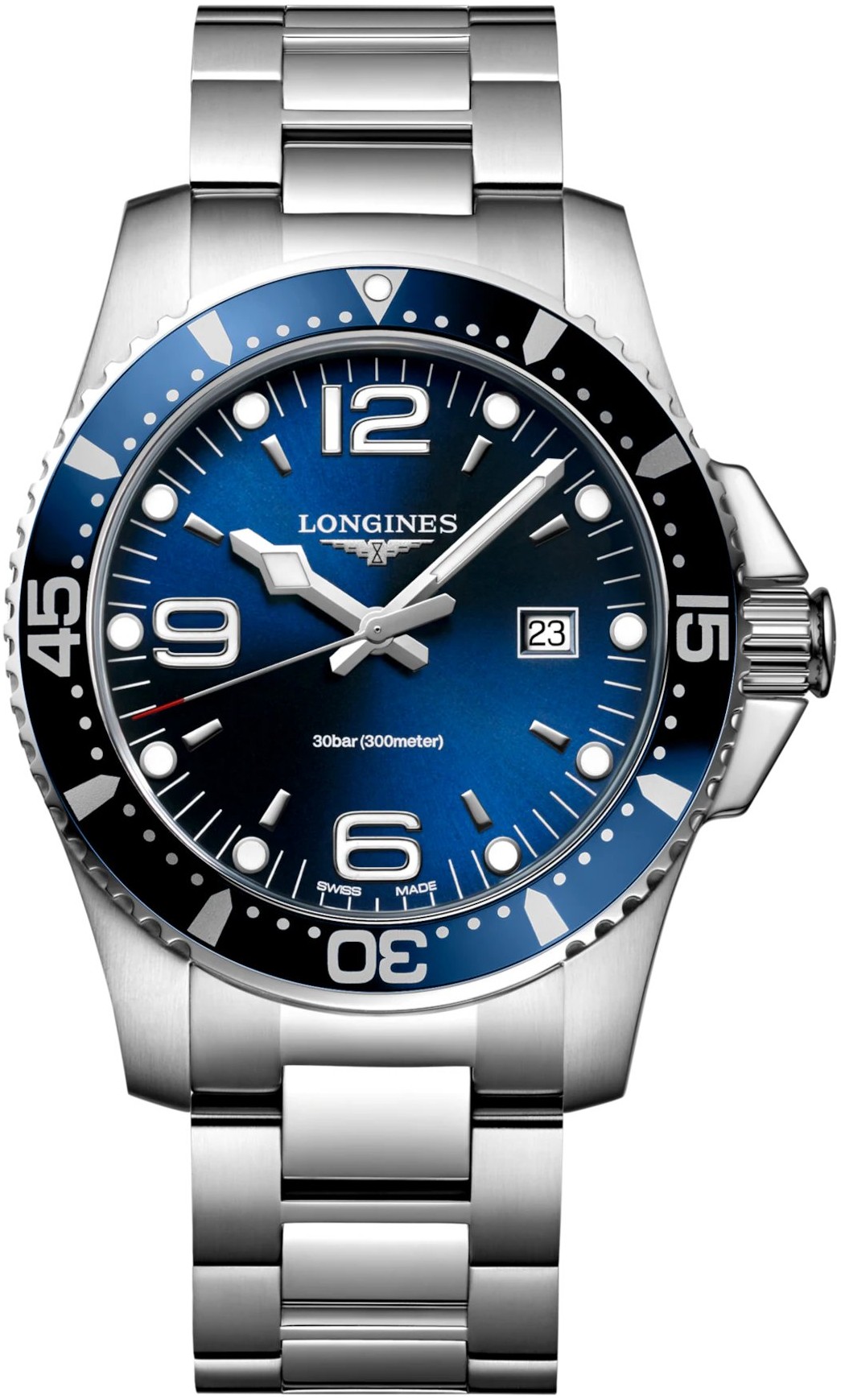 Longines HydroConquest L3.840.4.96.6 jsou pánské potápěčské bateriové hodinky na ocelovém náramku s překlápěcí sponou. Pouzdro z nerezové oceli má průměr 44 milimetrů, broušenou povrchovou úpravu, šroubovací korunku a jednosměrně otočnou lunetu s modrou hliníkovou vložkou. Modrý číselník s efektem slunečního brusu a ukazatelem data na třetí hodině je chráněn safírovým sklem s antireflexní vrstvou na spodní straně skla. Aplikované hodinové indexy i ručky pokrývá luminiscenční nátěr Super-LumiNova®, který po nasvícení garantuje perfektní čitelnost za zhoršených světelných podmínek. Pohon hodinek zajišťuje quartzový strojek L157 s výdrží až 25 měsíců a indikací slabé baterie. S vodotěsností 30 ATM jsou hodinky vhodné pro hlubinné potápění.