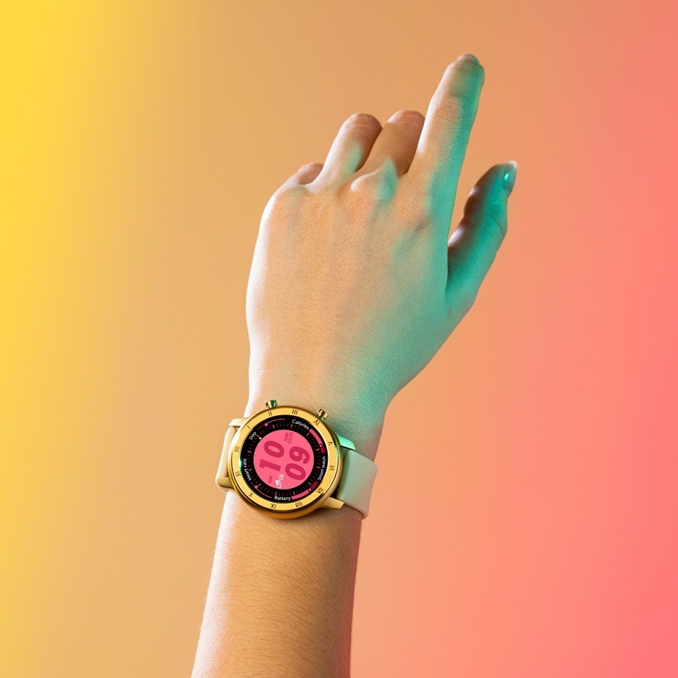 Informace na displeji můžete zobrazit v 11 jazycích včetně angličtiny, němčiny, ruštiny či španělštiny, čeština k dispozici není. Plně dotykový kruhový displej s rozlišením 240x240 px je chráněn ocelovým pouzdrem, na které navazuje milánský tah z oceli s PVD úpravou. Vzhled hodinek se dá navíc velmi snadno měnit díky výběru z několika hlavních motivů obrazovky.