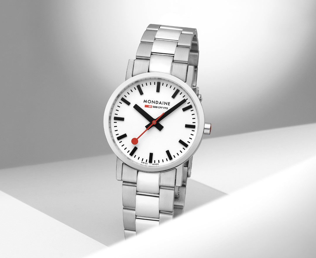 Švajčiarska značka Mondaine je známa svojím ikonickým a osobitým dizajnom staničných hodín v štýle Bauhaus, ktoré sú už viac ako 70 rokov súčasťou každej švajčiarskej vlakovej stanice. Príbeh Mondaine sa začal v roku 1951, kedy došlo vo švajčiarskom meste Solothurn k založeniu spoločnosti. Pôvod ikonickej značky siaha však až do roku 1944, kedy zamestnanec SBB (Švajčiarskej spolkovej dráhy), elektrotechnik a konštruktér Hans Hilfiker navrhol nadčasové staničné hodiny s červenou sekundovou ručičkou, ktorá bola inšpirovaná výpravkou slúžiacou k odbavovaniu vlakov. Tento ikonický dizajn sa dostal v roku 1986 aj na zápästie, keď značka Mondaine uviedla prvé náramkové hodinky inšpirované oficiálnymi staničnými hodinami.