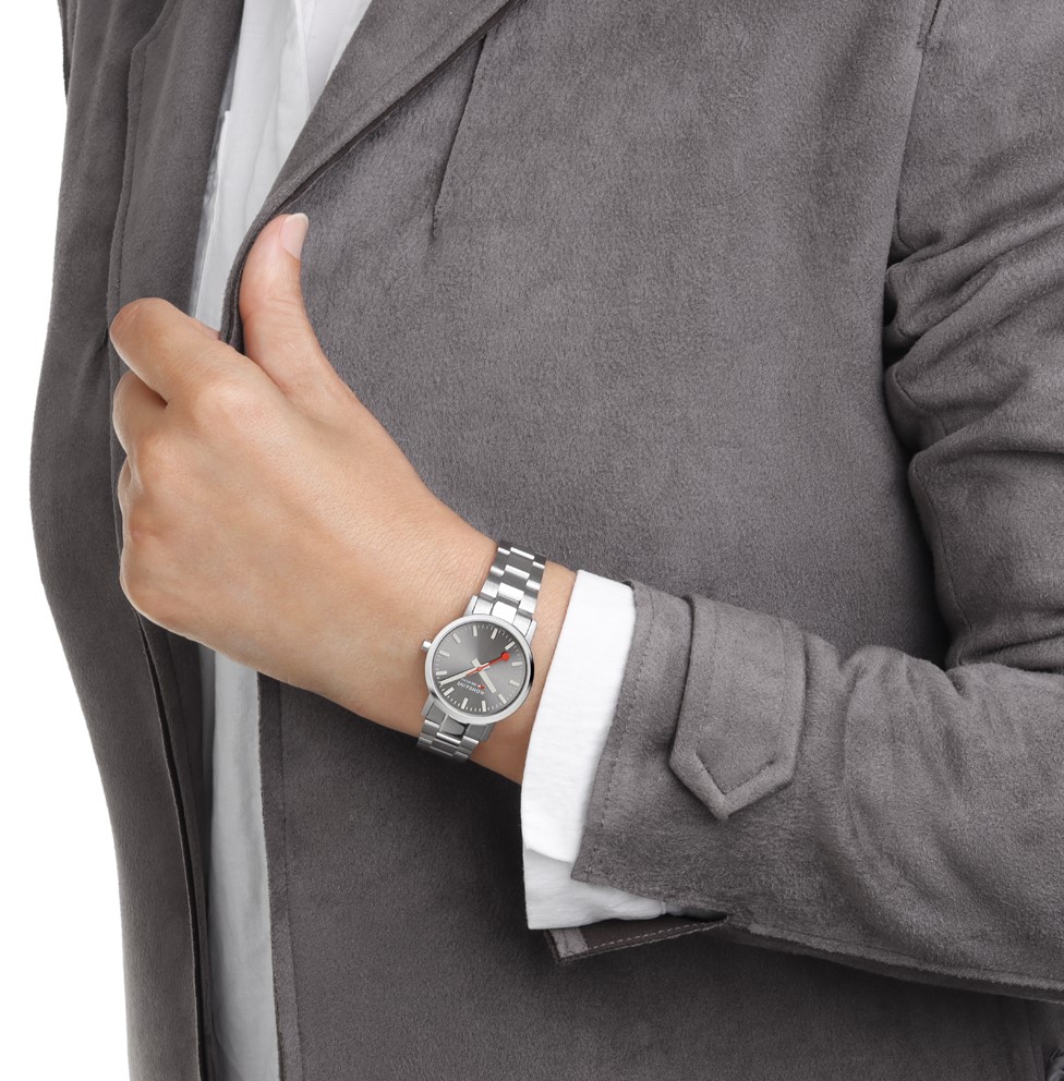 Švajčiarska značka Mondaine je známa svojím ikonickým a osobitým dizajnom staničných hodín v štýle Bauhaus, ktoré sú už viac ako 70 rokov súčasťou každej švajčiarskej vlakovej stanice. Príbeh Mondaine sa začal v roku 1951, kedy došlo vo švajčiarskom meste Solothurn k založeniu spoločnosti. Pôvod ikonickej značky siaha však až do roku 1944, kedy zamestnanec SBB (Švajčiarskej spolkovej dráhy), elektrotechnik a konštruktér Hans Hilfiker navrhol nadčasové staničné hodiny s červenou sekundovou ručičkou, ktorá bola inšpirovaná výpravkou slúžiacou k odbavovaniu vlakov. Tento ikonický dizajn sa dostal v roku 1986 aj na zápästie, keď značka Mondaine uviedla prvé náramkové hodinky inšpirované oficiálnymi staničnými hodinami.