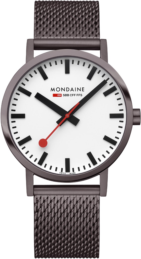 Švajčiarska značka Mondaine je známa svojím ikonickým a osobitým dizajnom staničných hodín v štýle Bauhaus, ktoré sú už viac ako 70 rokov súčasťou každej švajčiarskej vlakovej stanice. Príbeh Mondaine sa začal v roku 1951, kedy došlo vo švajčiarskom meste Solothurn k založeniu spoločnosti. Pôvod ikonickej značky siaha však až do roku 1944, kedy zamestnanec SBB (Švajčiarskej spolkovej dráhy), elektrotechnik a konštruktér Hans Hilfiker navrhol nadčasové staničné hodiny s červenou sekundovou ručičkou, ktorá bola inšpirovaná výpravkou slúžiacou k odbavovaniu vlakov. Tento ikonický dizajn sa dostal v roku 1986 aj na zápästie, keď značka Mondaine uviedla prvé náramkové hodinky inšpirované oficiálnymi staničnými hodinami.