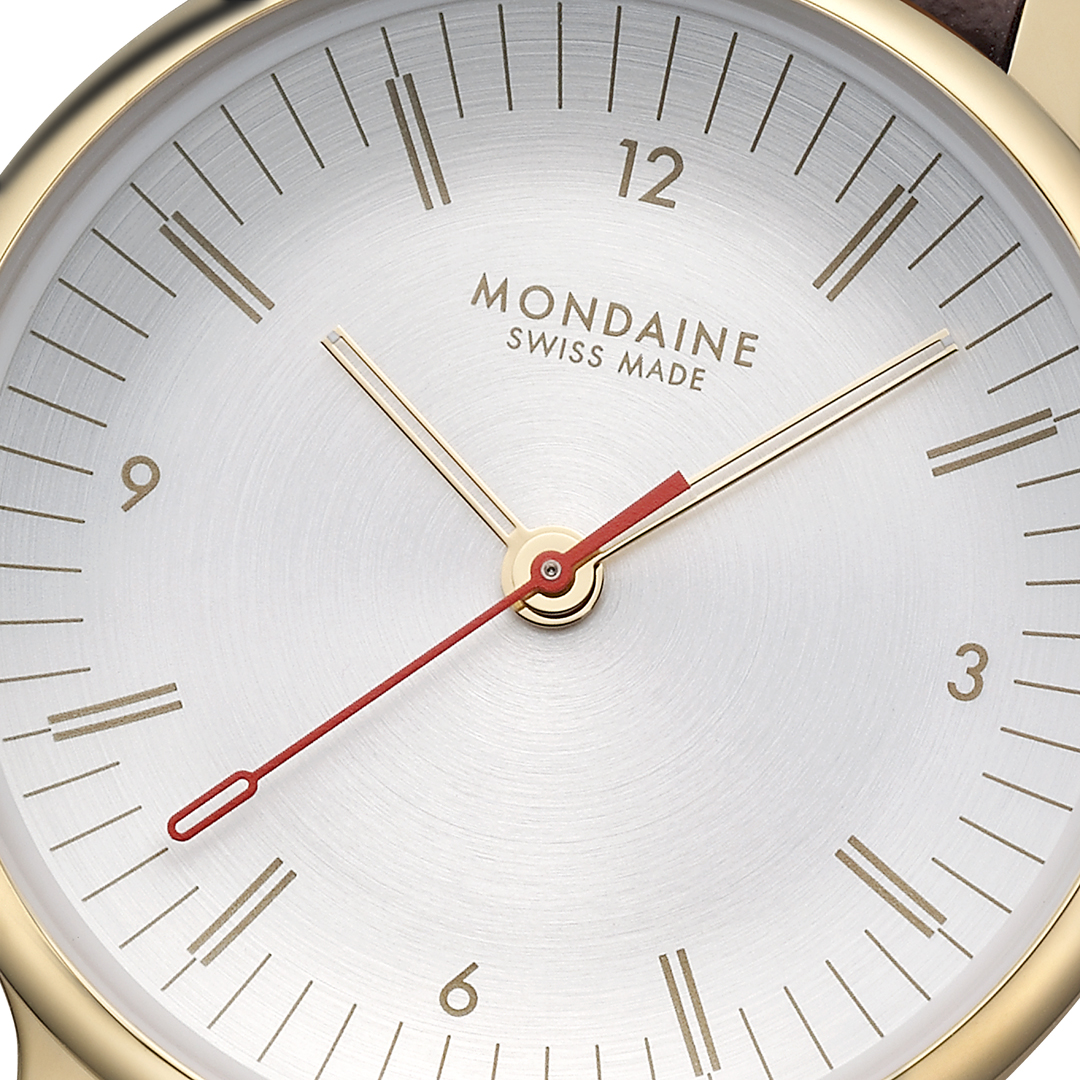 Švajčiarska značka Mondaine je známa svojím ikonickým a osobitým dizajnom staničných hodín v štýle Bauhaus, ktoré sú už viac ako 70 rokov súčasťou každej švajčiarskej vlakovej stanice. Príbeh Mondaine sa začal v roku 1951, kedy došlo vo švajčiarskom meste Solothurn k založeniu spoločnosti. Pôvod ikonickej značky siaha však až do roku 1944, kedy zamestnanec SBB (Švajčiarskej spolkovej dráhy), elektrotechnik a konštruktér Hans Hilfiker navrhol nadčasové staničné hodiny s červenou sekundovou ručičkou, ktorá bola inšpirovaná výpravkou slúžiacou k odbavovaniu vlakov. Tento ikonický dizajn sa dostal v roku 1986 aj na zápästie, keď značka Mondaine uviedla prvé náramkové hodinky inšpirované oficiálnymi staničnými hodinami.