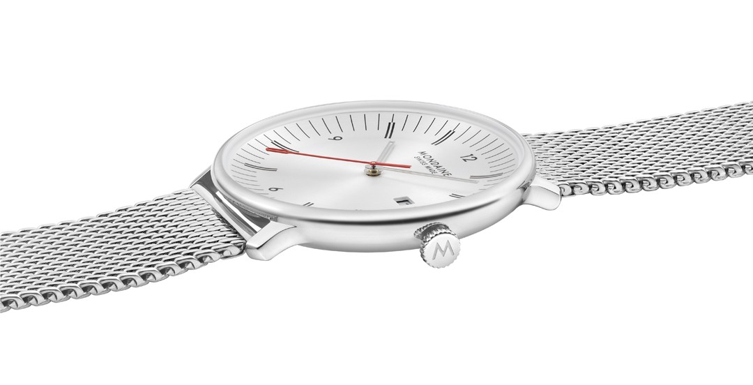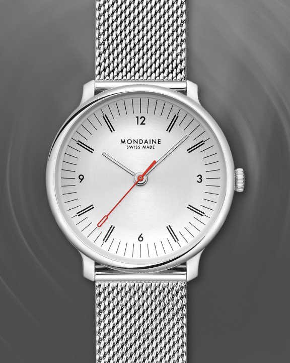 Švajčiarska značka Mondaine je známa svojím ikonickým a osobitým dizajnom staničných hodín v štýle Bauhaus, ktoré sú už viac ako 70 rokov súčasťou každej švajčiarskej vlakovej stanice. Príbeh Mondaine sa začal v roku 1951, kedy došlo vo švajčiarskom meste Solothurn k založeniu spoločnosti. Pôvod ikonickej značky siaha však až do roku 1944, kedy zamestnanec SBB (Švajčiarskej spolkovej dráhy), elektrotechnik a konštruktér Hans Hilfiker navrhol nadčasové staničné hodiny s červenou sekundovou ručičkou, ktorá bola inšpirovaná výpravkou slúžiacou k odbavovaniu vlakov. Tento ikonický dizajn sa dostal v roku 1986 aj na zápästie, keď značka Mondaine uviedla prvé náramkové hodinky inšpirované oficiálnymi staničnými hodinami.