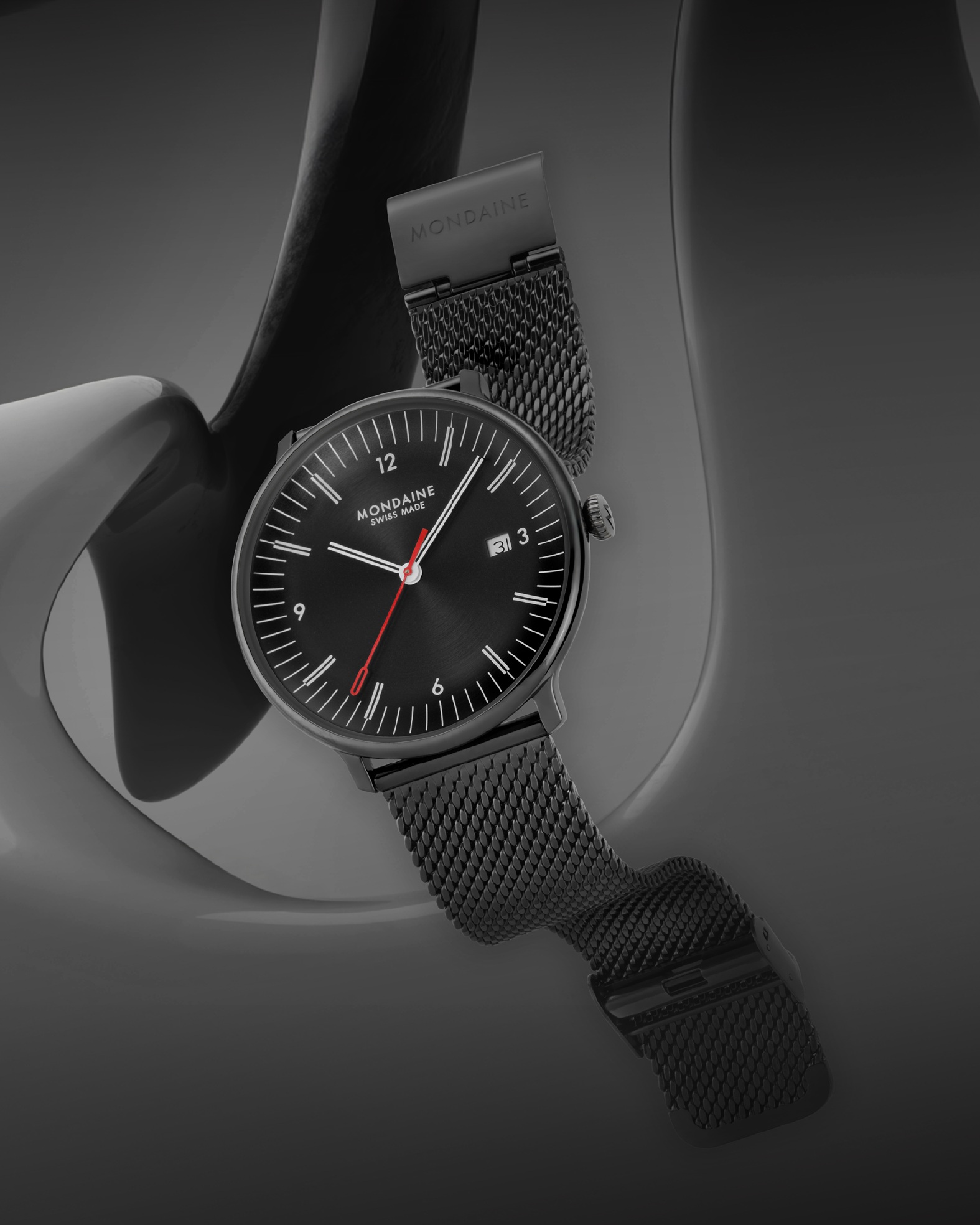 Švajčiarska značka Mondaine je známa svojím ikonickým a osobitým dizajnom staničných hodín v štýle Bauhaus, ktoré sú už viac ako 70 rokov súčasťou každej švajčiarskej vlakovej stanice. Príbeh Mondaine sa začal v roku 1951, kedy došlo vo švajčiarskom meste Solothurn k založeniu spoločnosti. Pôvod ikonickej značky siaha však až do roku 1944, kedy zamestnanec SBB (Švajčiarskej spolkovej dráhy), elektrotechnik a konštruktér Hans Hilfiker navrhol nadčasové staničné hodiny s červenou sekundovou ručičkou, ktorá bola inšpirovaná výpravkou slúžiacou k odbavovaniu vlakov. Tento ikonický dizajn sa dostal v roku 1986 aj na zápästie, keď značka Mondaine uviedla prvé náramkové hodinky inšpirované oficiálnymi staničnými hodinami.