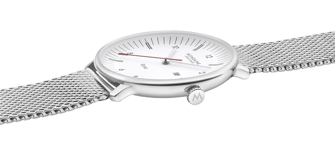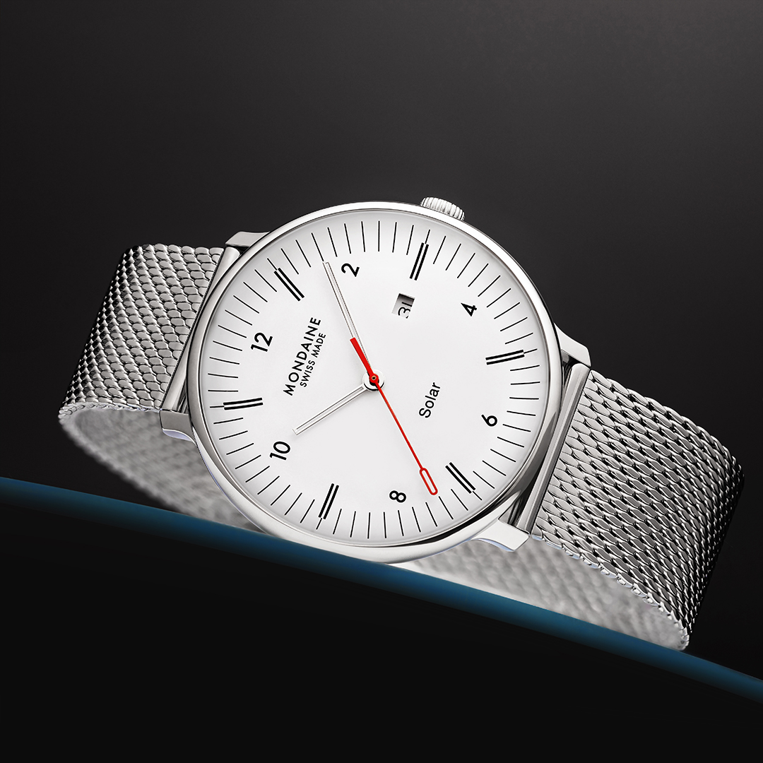 Švajčiarska značka Mondaine je známa svojím ikonickým a osobitým dizajnom staničných hodín v štýle Bauhaus, ktoré sú už viac ako 70 rokov súčasťou každej švajčiarskej vlakovej stanice. Príbeh Mondaine sa začal v roku 1951, kedy došlo vo švajčiarskom meste Solothurn k založeniu spoločnosti. Pôvod ikonickej značky siaha však až do roku 1944, kedy zamestnanec SBB (Švajčiarskej spolkovej dráhy), elektrotechnik a konštruktér Hans Hilfiker navrhol nadčasové staničné hodiny s červenou sekundovou ručičkou, ktorá bola inšpirovaná výpravkou slúžiacou k odbavovaniu vlakov. Tento ikonický dizajn sa dostal v roku 1986 aj na zápästie, keď značka Mondaine uviedla prvé náramkové hodinky inšpirované oficiálnymi staničnými hodinami.