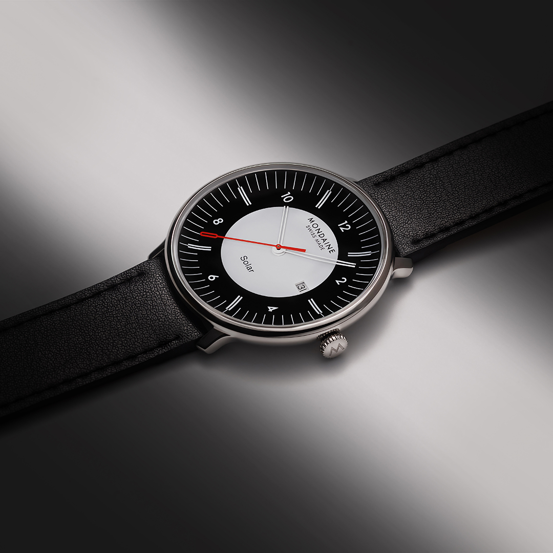 Švajčiarska značka Mondaine je známa svojím ikonickým a osobitým dizajnom staničných hodín v štýle Bauhaus, ktoré sú už viac ako 70 rokov súčasťou každej švajčiarskej vlakovej stanice. Príbeh Mondaine sa začal v roku 1951, kedy došlo vo švajčiarskom meste Solothurn k založeniu spoločnosti. Pôvod ikonickej značky siaha však až do roku 1944, kedy zamestnanec SBB (Švajčiarskej spolkovej dráhy), elektrotechnik a konštruktér Hans Hilfiker navrhol nadčasové staničné hodiny s červenou sekundovou ručičkou, ktorá bola inšpirovaná výpravkou slúžiacou k odbavovaniu vlakov. Tento ikonický dizajn sa dostal v roku 1986 aj na zápästie, keď značka Mondaine uviedla prvé náramkové hodinky inšpirované oficiálnymi staničnými hodinami.