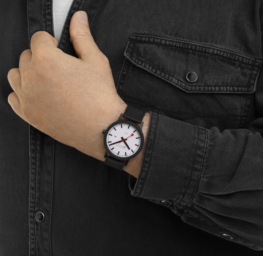 Švajčiarska značka Mondaine je známa svojím ikonickým a osobitým dizajnom staničných hodín v štýle Bauhaus, ktoré sú už viac ako 70 rokov súčasťou každej švajčiarskej vlakovej stanice. Príbeh Mondaine sa začal v roku 1951, kedy došlo vo švajčiarskom meste Solothurn k založeniu spoločnosti. Pôvod ikonickej značky siaha však až do roku 1944, kedy zamestnanec SBB (Švajčiarskej spolkovej dráhy), elektrotechnik a konštruktér Hans Hilfiker navrhol nadčasové staničné hodiny s červenou sekundovou ručičkou, ktorá bola inšpirovaná výpravkou slúžiacou k odbavovaniu vlakov. Tento ikonický dizajn sa dostal v roku 1986 aj na zápästie, keď značka Mondaine uviedla prvé náramkové hodinky inšpirované oficiálnymi staničnými hodinami.