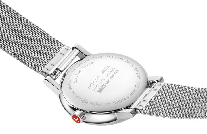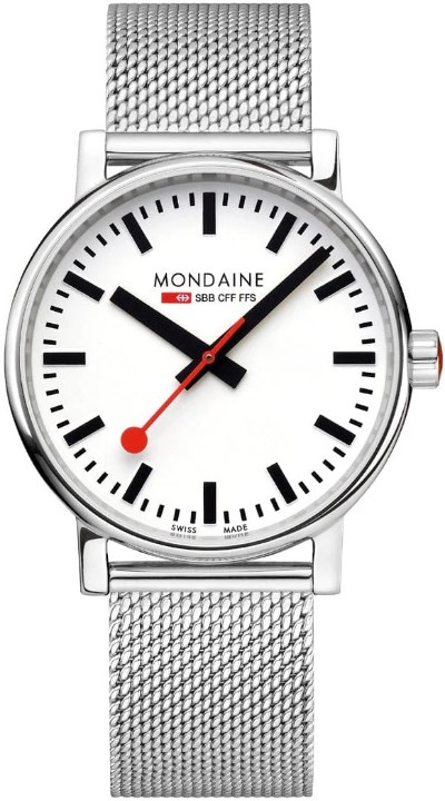 MONDAINE Evo2 MSE.40110.SM jsou pánské elegantní bateriové hodinky na ocelovém milánském tahu s posuvnou sponou. Pouzdro z nerezové oceli má průměr 40 milimetrů. Přehledný bílý číselník je chráněn safírovým sklíčkem a je inspirován ikonickými nádražními hodinami s červenou sekundovou ručkou. Pohon hodinek zajišťuje quartzový strojek Ronda 513. S vodotěsností 3 ATM jsou hodinky odolné proti dešti a při mytí rukou.