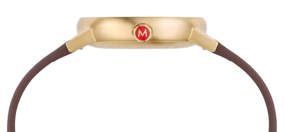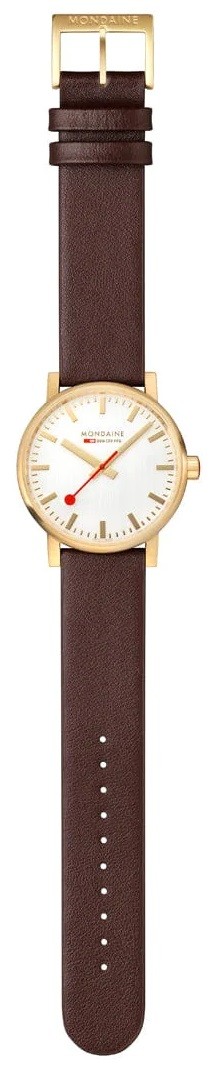MONDAINE Evo2 MSE.40112.LGV jsou pánské elegantní bateriové hodinky na hnědém řemínku z veganské kůže s trnovou sponou. Pouzdro z nerezové oceli s povrchovou PVD úpravou ve zlaté barvě má průměr 40 milimetrů. Přehledný bílý číselník s vertikální texturou je chráněn safírovým sklíčkem a je inspirován ikonickými nádražními hodinami s červenou sekundovou ručkou. Pohon hodinek zajišťuje quartzový strojek Ronda 513. S vodotěsností 3 ATM jsou hodinky odolné proti dešti a při mytí rukou.