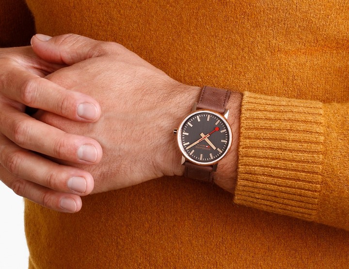 Švajčiarska značka Mondaine je známa svojím ikonickým a osobitým dizajnom staničných hodín v štýle Bauhaus, ktoré sú už viac ako 70 rokov súčasťou každej švajčiarskej vlakovej stanice. Príbeh Mondaine sa začal v roku 1951, kedy došlo vo švajčiarskom meste Solothurn k založeniu spoločnosti. Pôvod ikonickej značky siaha však až do roku 1944, kedy zamestnanec SBB (Švajčiarskej spolkovej dráhy), elektrotechnik a konštruktér Hans Hilfiker navrhol nadčasové staničné hodiny s červenou sekundovou ručičkou, ktorá bola inšpirovaná výpravkou slúžiacou k odbavovaniu vlakov. Tento ikonický dizajn sa dostal v roku 1986 aj na zápästie, keď značka Mondaine uviedla prvé náramkové hodinky inšpirované oficiálnymi staničnými hodinami.
