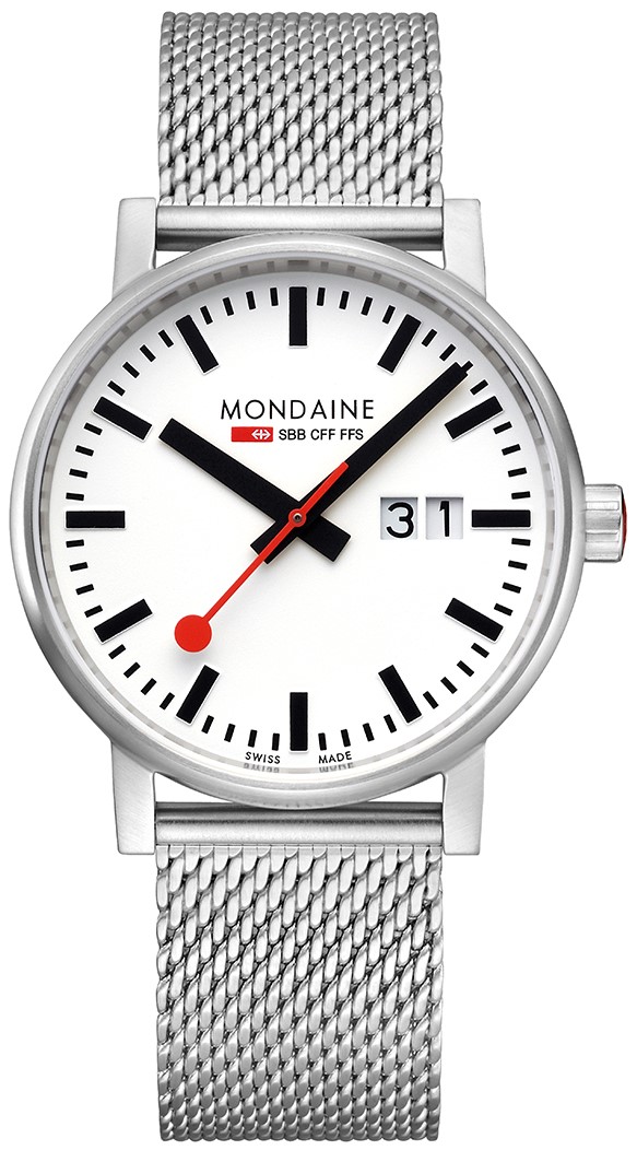 Švajčiarska značka Mondaine je známa svojím ikonickým a osobitým dizajnom staničných hodín v štýle Bauhaus, ktoré sú už viac ako 70 rokov súčasťou každej švajčiarskej vlakovej stanice. Príbeh Mondaine sa začal v roku 1951, kedy došlo vo švajčiarskom meste Solothurn k založeniu spoločnosti. Pôvod ikonickej značky siaha však až do roku 1944, kedy zamestnanec SBB (Švajčiarskej spolkovej dráhy), elektrotechnik a konštruktér Hans Hilfiker navrhol nadčasové staničné hodiny s červenou sekundovou ručičkou, ktorá bola inšpirovaná výpravkou slúžiacou k odbavovaniu vlakov. Tento ikonický dizajn sa dostal v roku 1986 aj na zápästie, keď značka Mondaine uviedla prvé náramkové hodinky inšpirované oficiálnymi staničnými hodinami.