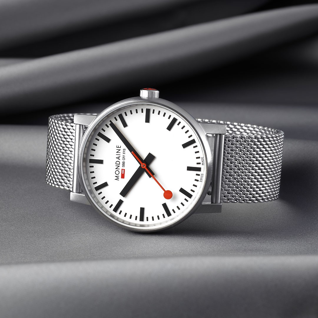 Švajčiarska značka Mondaine je známa svojím ikonickým a osobitým dizajnom staničných hodín v štýle Bauhaus, ktoré sú už viac ako 70 rokov súčasťou každej švajčiarskej vlakovej stanice. Príbeh Mondaine sa začal v roku 1951, kedy došlo vo švajčiarskom meste Solothurn k založeniu spoločnosti. Pôvod ikonickej značky siaha však až do roku 1944, kedy zamestnanec SBB (Švajčiarskej spolkovej dráhy), elektrotechnik a konštruktér Hans Hilfiker navrhol nadčasové staničné hodiny s červenou sekundovou ručičkou, ktorá bola inšpirovaná výpravkou slúžiacou k odbavovaniu vlakov. Tento ikonický dizajn sa dostal v roku 1986 aj na zápästie, keď značka Mondaine uviedla prvé náramkové hodinky inšpirované oficiálnymi staničnými hodinami.