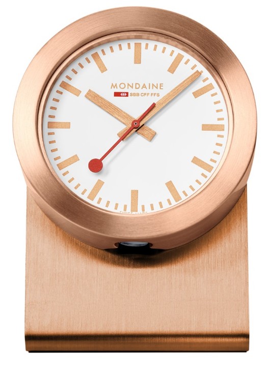 MONDAINE A660.30318.82SBK jsou hodiny, jejichž hliníkové pouzdro v barvě růžového zlata má průměr 50 milimetrů. Díky magnetu, který je umístěn na zadní straně, můžete hodiny umístit buď na stojánek, který je součástí balení nebo na jakékoliv jiné kovové povrchy. Číselník v bílé barvě je chráněn tvrzeným minerálním sklem a je inspirován ikonickými nádražními hodinami s červenou sekundovou ručkou. Pohon hodinek je zajištěn quartzovým strojkem.