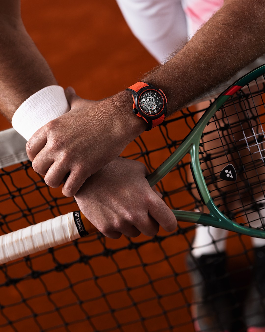 Na 100% švýcarských hodinkách z kolekce Wild ONE vynikne kromě jejich neuvěřitelné lehkosti především jejich inovativní konstrukce. Manufakturní kalibr N08S s automatickým nátahem, jehož rezerva chodu činí až 41 hodin, je uschován v titanovém pouzdře, které je obklopeno kaučukovou vrstvou, jejíž funkce je tlumení nárazů. To celé je chráněné „klecí“ z patentovaného materiálu NORTEQ a zabezpečené šrouby, které byly vyrobeny na zakázku přímo pro tento koncept.