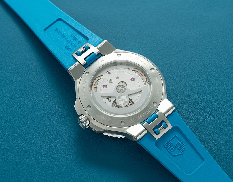 Oris Aquis Date 01 400 7790 4135-07 4 23 45EB jsou pánské automatické hodinky na modrém kaučukovém řemínku s překlápěcí sponou. Pouzdro z nerezové oceli má průměr 43,5 milimetru, průhledné dýnko a jednosměrně otočnou lunetu s keramickou vložkou s potápěčskou stupnicí. Modrý číselník s efektem slunečního brusu a indikací data na šesté hodině je chráněn odolným safírovým sklem s antireflexní vrstvou. Ručičky, indexy a část lunety jsou pokryty luminiscenčním nátěrem Super-LumiNova®, který garantuje perfektní čitelnost za zhoršených světelných podmínek. Pohon hodinek zajišťuje mechanický manufakturní strojek Oris 400 s automatickým nátahem a nadstandardní rezervou chodu ve výši 5 dní. Strojek disponuje dvěma pérovníky a chybí mu tradiční červený rotor, čímž se kalibr 400 odlišuje od modelů značky s běžnými strojky. Kromě pětidenní rezervy chodu nabízí strojek ještě zvýšenou odolnost vůči magnetismu, čemuž napomáhají mimo jiné kotva a krokové kolo z křemíku. Oris u tohoto strojku doporučuje servisní interval 10 let, tedy dvojnásobek doporučené doby u běžných mechanických hodinek, a především strojku věří natolik, že u něj poskytuje záruku taktéž ve výši 10 let! Tento strojek s funkcí hackingu, který lze v případě potřeby natahovat i ručně pomocí signované šroubovací korunky. Vodotěsnost hodinek činí 30 ATM a jsou tak vhodnou volbou pro šnorchlování a potápění.
