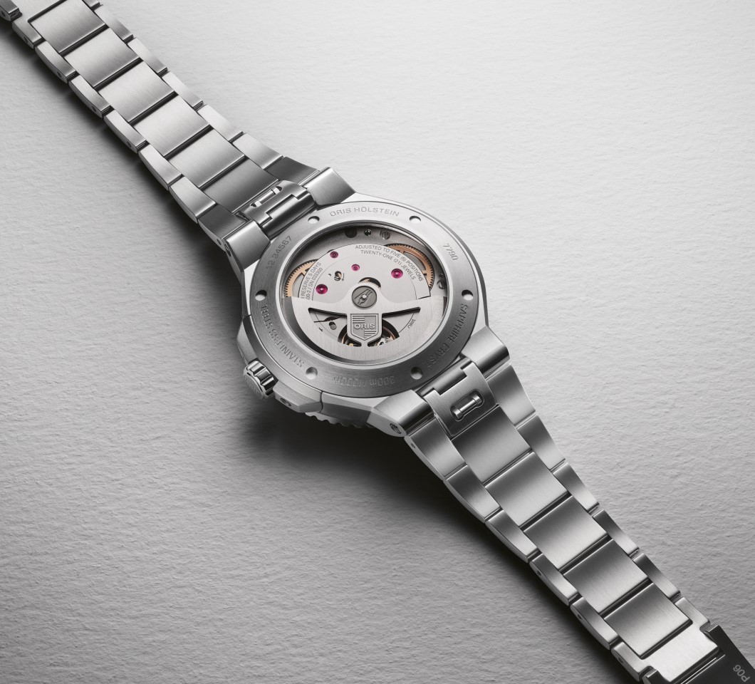 Oris Aquis Date 01 400 7790 4135-07 8 23 02PEB jsou pánské automatické hodinky na ocelovém náramku v kombinaci brusu a lesku s překlápěcí sponou. Pouzdro z nerezové oceli má průměr 43,5 milimetru, průhledné dýnko a jednosměrně otočnou lunetu s keramickou vložkou s potápěčskou stupnicí. Modrý číselník s efektem slunečního brusu a indikací data na šesté hodině je chráněn odolným safírovým sklem s antireflexní vrstvou. Ručičky, indexy a část lunety jsou pokryty luminiscenčním nátěrem Super-LumiNova®, který garantuje perfektní čitelnost za zhoršených světelných podmínek. Pohon hodinek zajišťuje mechanický manufakturní strojek Oris 400 s automatickým nátahem a nadstandardní rezervou chodu ve výši 5 dní. Strojek disponuje dvěma pérovníky a chybí mu tradiční červený rotor, čímž se kalibr 400 odlišuje od modelů značky s běžnými strojky. Kromě pětidenní rezervy chodu nabízí strojek ještě zvýšenou odolnost vůči magnetismu, čemuž napomáhají mimo jiné kotva a krokové kolo z křemíku. Oris u tohoto strojku doporučuje servisní interval 10 let, tedy dvojnásobek doporučené doby u běžných mechanických hodinek, a především strojku věří natolik, že u něj poskytuje záruku taktéž ve výši 10 let! Tento strojek s funkcí hackingu, který lze v případě potřeby natahovat i ručně pomocí signované šroubovací korunky. Vodotěsnost hodinek činí 30 ATM a jsou tak vhodnou volbou pro šnorchlování a potápění.