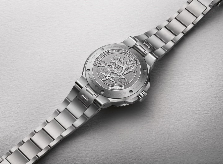 Oris Aquis Date Great Barrier Reef Limited Edition IV 01 400 7790 4185-Set jsou pánské automatické hodinky na ocelovém náramku v kombinaci brusu a lesku s překlápěcí sponou. Jedná se o limitovanou edici v počtu 2000 kusů pro celý svět věnovanou Velkému Bariérovému útesu v Austrálii na podporu nadace Reef Restoration Foundation. Jsou to již čtvrté hodinky z limitované série Great Barrier Reef. Tyto hodinky jsou součásí dlouhodobého závazku značky Oris vůči australskému Velkému Bariérovému útesu, největšímu útesovému systému na světě. Při přípravě edic z let 2010 a 2016 spolupracoval Oris s australskou organizací AMCS (Australian Marine Conservation Society), což je hlavní australská charitativní organizace na ochranu oceánů. AMCS stojí v čele projektů, vládních iniciativ a nových zákonů na ochranu jedinečných mořských ekosystémů. V roce 2019 Oris ve spolupráci s nadací Reef Restoration Foundation uvedl na trh limitovanou edici Great Barrier Reef III. Tato nezisková organizace se sídlem v Queenslandu vyvinula systémy korálových stromů pro obnovu útesů postižených znečištěním a změnou klimatu, což jsou kritické problémy ovlivňující citlivé druhy korálů na útesech. Nadace Reef Restoration Foundation proti tomu působí tak, že pěstuje odolnější druhy korálů, aby znovu vytvořila ekosystémy, které jsou pak schopny podporovat i citlivější druhy korálů.