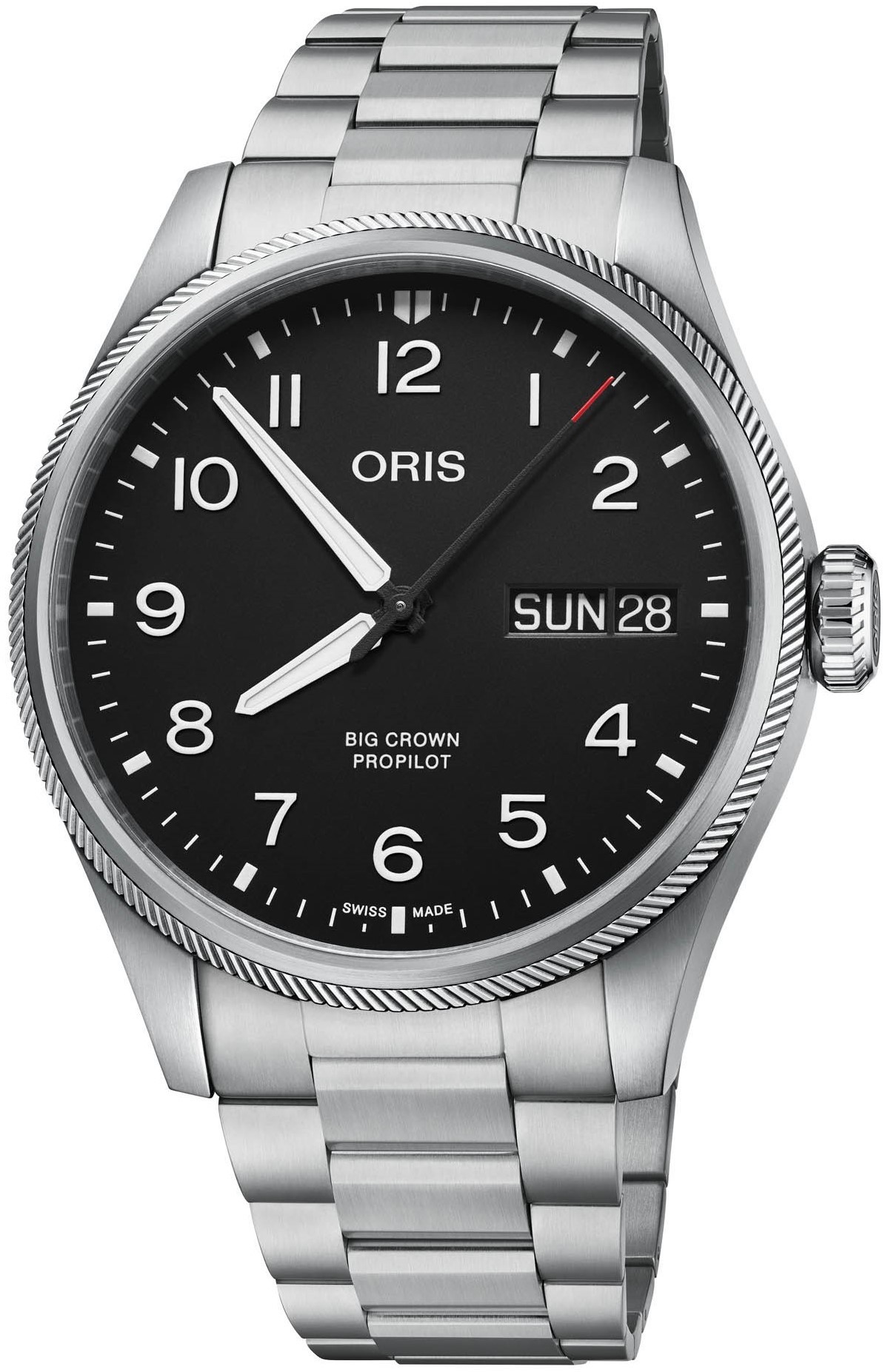 Oris Big Crown ProPilot Big Day Date 01 752 7760 4164-07 8 22 08 sú pánske pilotné hodinky v klasickom štýle na oceľovom náramku s preklápacou sponou. Oceľové puzdro má priemer 44 milimetrov, skrutkovaciu korunku a priehľadné viečko, ktoré ponúka pohľad na stroj hodiniek s ikonickým červeným rotorom. Čierny číselník s ukazovateľom dátumu a dňa v týždni na tretej hodine je chránený klenutým zafírovým sklom s vnútornou antireflexnou vrstvou na minimalizovanie odleskov svetla. Ručičky a indexy sú ošetrené náterom Super-LumiNova® pre čo najlepšiu možnú čitateľnosť za zhoršených svetelných podmienok. Chod hodiniek zaisťuje mechanický kaliber Oris 752 s automatickým náťahom a rezervou chodu 38 hodín. Tento strojček je vybavený funkciou zastavenia sekundovej ručičky pri vytiahnutí korunky do krajnej polohy, pre ktorú sa vžilo označenie hacking. S vodotesnosťou 10 ATM sú hodinky vhodné na plávanie a šnorchlovanie.