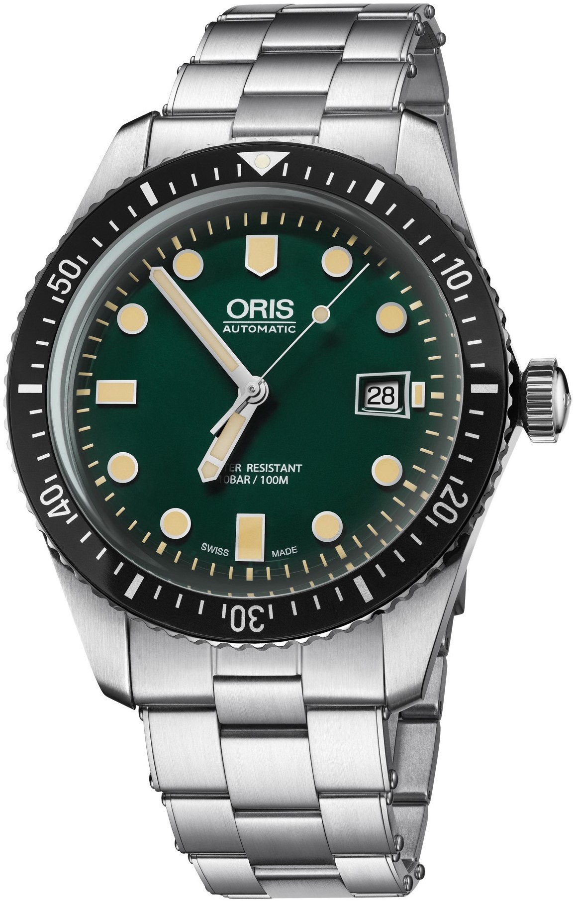 Oris Divers Sixty-Five 01 733 7720 4057-07 8 21 18 sú pánske športové hodinky na oceľovom náramku s preklápacou sponou. Oceľové puzdro má priemer 42 milimetrov, skrutkovaciu korunku a čiernu jednosmerne otočnú lunetu slúžiacu k ľahkému vymedzeniu časového úseku. Zelený číselník s ukazovateľom dátumu na tretej hodine je chránený odolným klenutým zafírovým sklom s vnútornou antireflexnou vrstvou na minimalizovanie odleskov svetla. Ručičky, indexy a bod na lunete disponujú náterom Super-LumiNova®, ktorý garantuje perfektnú čitateľnosť za zhoršených svetelných podmienok. Chod hodiniek zaisťuje mechanický strojček Oris 733 s automatickým náťahom a rezervou chodu 38 hodín. Tento strojček s funkciou hackingu je možné v prípade potreby naťahovať aj ručne pomocou signovanej skrutkovacej korunky. S vodotesnosťou 10 ATM sú hodinky vhodné na plávanie a šnorchlovanie.