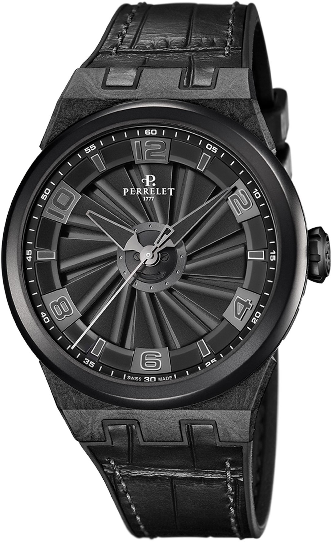 Uhlíková vlákna Perrelet dosud nikdy nepoužil – s výjimkou unikátního kusu „Turbine Hope“ vytvořeného pro 9. ročník charitativní aukce Only Watch v roce 2021 – jsou nyní použita na řadě nových hodinek ze sportovní řady Turbine včetně modelu Turbine Carbon Black Edition.