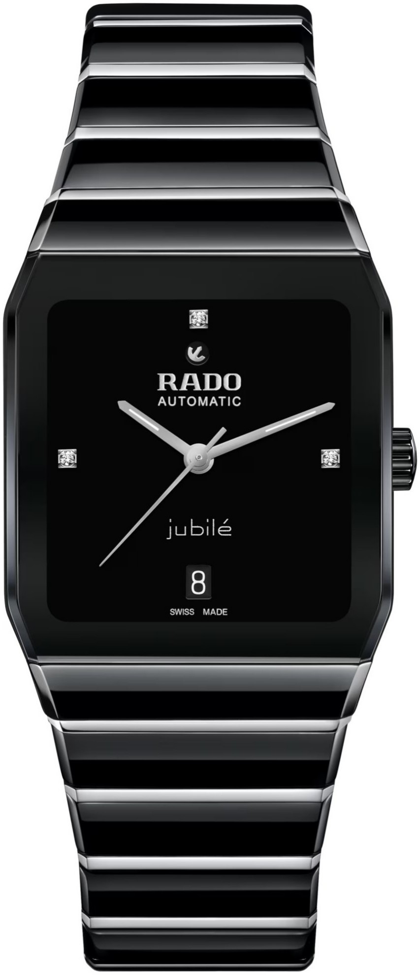Rado Anatom Automatic R10201712 sú luxusné unisex hodinky v elegantnom štýle na bicolor náramku z keramiky a ocele s motýlikovou sponou. Čierne keramické puzdro so šírkou 32,5 milimetra je vyrobené z odolného materiálu High-Tech Ceramic, vďaka ktorému sú hodinky ľahké, hypoalergénne a odolné voči poškriabaniu. Priehľadné zadné viečko z nerezovej ocele a sklíčka umožňuje sledovať chod strojčeka. Čierny číselník so 3 diamantmi a ukazovateľom dátumu na pozícii 6. hodiny je chránený cylindrickým zafírovým sklom s antireflexnou vrstvou na vnútornej strane. Ručičky sú pokryté luminiscenčným náterom Super-LumiNova®, ktorý garantuje perfektnú čitateľnosť za zhoršených svetelných podmienok. Pohon hodiniek zaisťuje mechanický strojček R766 (03.766.731) s automatickým náťahom a rezervou chodu 72 hodín. Tento strojček s funkciou zastavenia sekundovej ručičky pri vytiahnutí korunky do krajnej polohy, pre ktorú sa vžilo označenie hacking, je možné v prípade potreby naťahovať aj ručne. Vďaka použitiu antimagnetického vlásku zotrvačky Nivachron™ je tento kaliber vysoko odolný voči vplyvom magnetického poľa. Vodotesnosť hodiniek robí 5 ATM a sú teda odolné proti dažďu a pri sprchovaní.