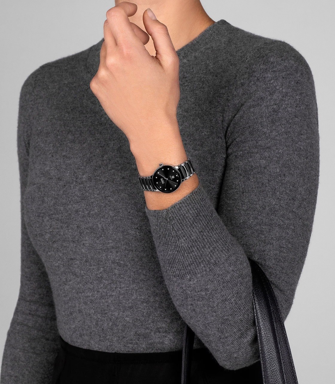 Rado Centrix Automatic Diamonds R30020742 sú dámske automatické hodinky elegantného štýlu s oceľovým puzdrom s priemerom 30,5 milimetra. Náramok tvorí kombinácia materiálu High-Tech Ceramic a ocele. Čierny fazetovaný číselník s dátumovkou na šiestej hodine zdobený 12 diamantmi Top Wesselton s hmotnosťou 0,038 ct a čistote VS-SI je chránený tzv. „edge to edge“ zafírovým sklom s metalizovaným rámčekom, ktoré siaha až k úplnému okraju puzdra.  Priehľadné viečko umožňuje pohľad na automatický kaliber R582 (03.582.432) dekorovaný ženevskými pruhmi a perlážou. Tento mechanický strojček s automatickým náťahom a rezervou chodu 48 hodín disponuje funkciou hackingu (zastavenie sekundovej ručičky pri vytiahnutí korunky do krajnej polohy) a je možné ho v prípade potreby naťahovať aj ručne. Vďaka použitiu antimagnetického vlásku zotrvačky Nivachron™ z titánovej zliatiny je tento kaliber vysoko odolný voči vplyvom magnetického poľa. Pre dosiahnutie čo najvyššej možnej presnosti je stroj testovaný v piatich pozíciách. Hodinky disponujú vodotesnosťou 5 ATM a sú teda odolné proti dažďu a pri sprchovaní.