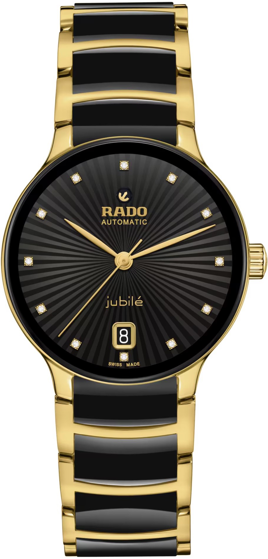 Rado Centrix Automatic Diamonds R30032742 sú dámske automatické hodinky elegantného štýlu s oceľovým puzdrom s priemerom 35 milimetrov. Náramok tvorí kombinácia materiálu Plasma High-Tech Ceramic a ocele. Puzdro s korunkou a oceľové časti náramku sú ošetrené PVD úpravou vo farbe zlata. Čierny fazetovaný číselník s dátumovkou na šiestej hodine zdobený 12 diamantmi Top Wesselton s hmotnosťou 0,051 ct a čistote VS-SI je chránený tzv. „edge to edge“ zafírovým sklom s metalizovaným rámčekom, ktoré siaha až k úplnému okraju puzdra.  Priehľadné viečko umožňuje pohľad na automatický kaliber R763 (03.763.242) dekorovaný ženevskými pruhmi a perlážou. Tento mechanický strojček s automatickým náťahom a rezervou chodu 80 hodín disponuje funkciou hackingu (zastavenie sekundovej ručičky pri vytiahnutí korunky do krajnej polohy) a je možné ho v prípade potreby naťahovať aj ručne. Vďaka použitiu antimagnetického vlásku zotrvačky Nivachron™ z titánovej zliatiny je tento kaliber vysoko odolný voči vplyvom magnetického poľa. Pre dosiahnutie čo najvyššej možnej presnosti je stroj testovaný v piatich pozíciách. Hodinky disponujú vodotesnosťou 5 ATM a sú teda odolné proti dažďu a pri sprchovaní.