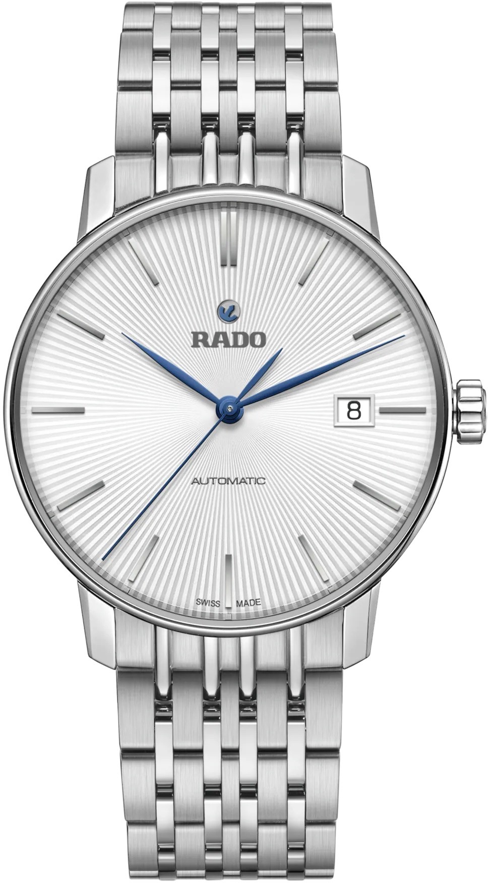 Rado Coupole Classic Automatic R22860044 sú pánske automatické hodinky v klasickom štýle na oceľovom náramku s motýľovou sponou a priemerom puzdra 37,7 milimetra. Strieborný fazetovaný číselník s modrými ručičkami a dátumovkou na tretej hodine je chránený zafírovým sklíčkom s obojstrannou antireflexnou vrstvou. Priehľadné viečko umožňuje pohľad na mechanický strojček dekorovaný ženevskými pruhmi. Tento mechanický strojček R763 (03.763.532) s automatickým náťahom a rezervou chodu 80 hodín disponuje funkciou hackingu (zastavenie sekundovej ručičky pri vytiahnutí korunky do krajnej polohy) a je možné ho v prípade potreby naťahovať aj ručne. Vďaka použitiu antimagnetického vlásku zotrvačky Nivachron™ z titánovej zliatiny je vysoko odolný voči vplyvom magnetického poľa. Na dosiahnutie čo najvyššej možnej presnosti je stroj testovaný v piatich pozíciách. S vodotesnosťou 5 ATM sú hodinky odolné proti dažďu a pri sprchovaní.