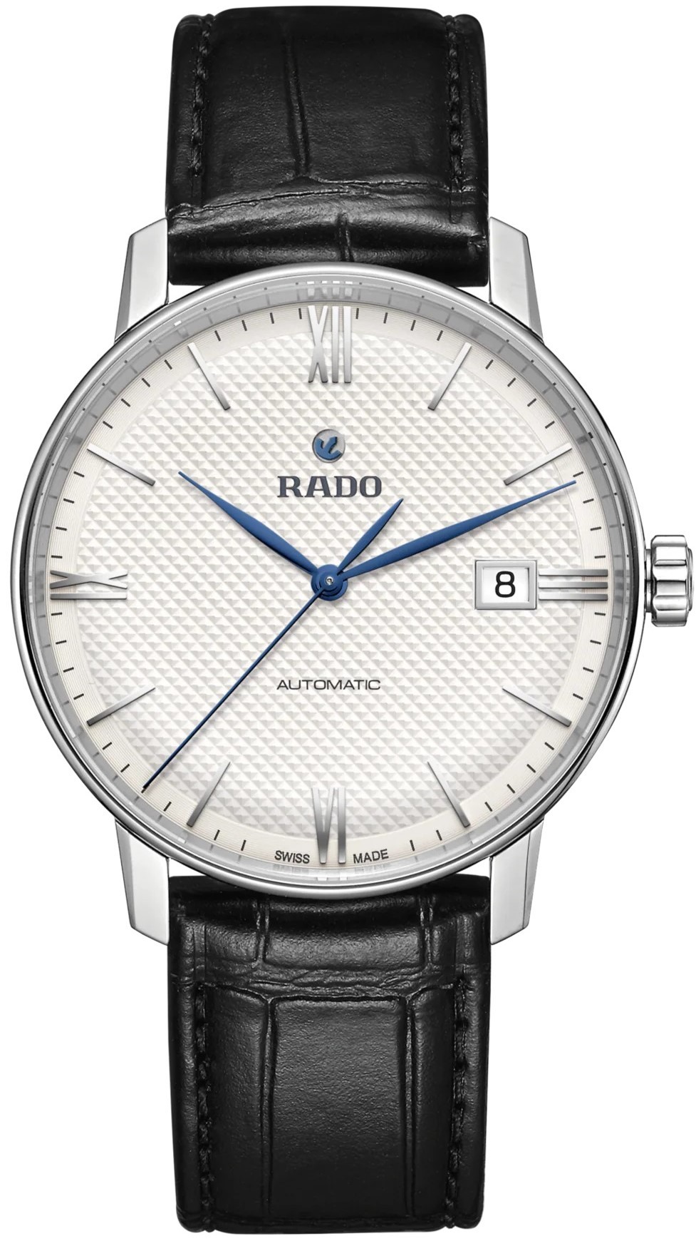 Rado Coupole Classic Automatic R22860075 sú pánske elegantné automatické hodinky na čiernom koženom remienku s priemerom puzdra 37,7 milimetra. Biely číselník zdobený gilošou s modrými ručičkami a dátumovkou na tretej hodine je chránený zafírovým sklíčkom s obojstrannou antireflexnou vrstvou. Priehľadné viečko umožňuje pohľad na mechanický strojček dekorovaný ženevskými pruhmi. Tento mechanický strojček R763 (03.763.532) s automatickým náťahom a rezervou chodu 80 hodín disponuje funkciou hackingu (zastavenie sekundovej ručičky pri vytiahnutí korunky do krajnej polohy). Vďaka použitiu antimagnetického vlásku zotrvačky Nivachron™ z titánovej zliatiny je vysoko odolný voči vplyvom magnetického poľa. Na dosiahnutie čo najvyššej možnej presnosti je stroj testovaný v piatich pozíciách. S vodotesnosťou 5 ATM sú hodinky odolné proti dažďu a pri sprchovaní.
