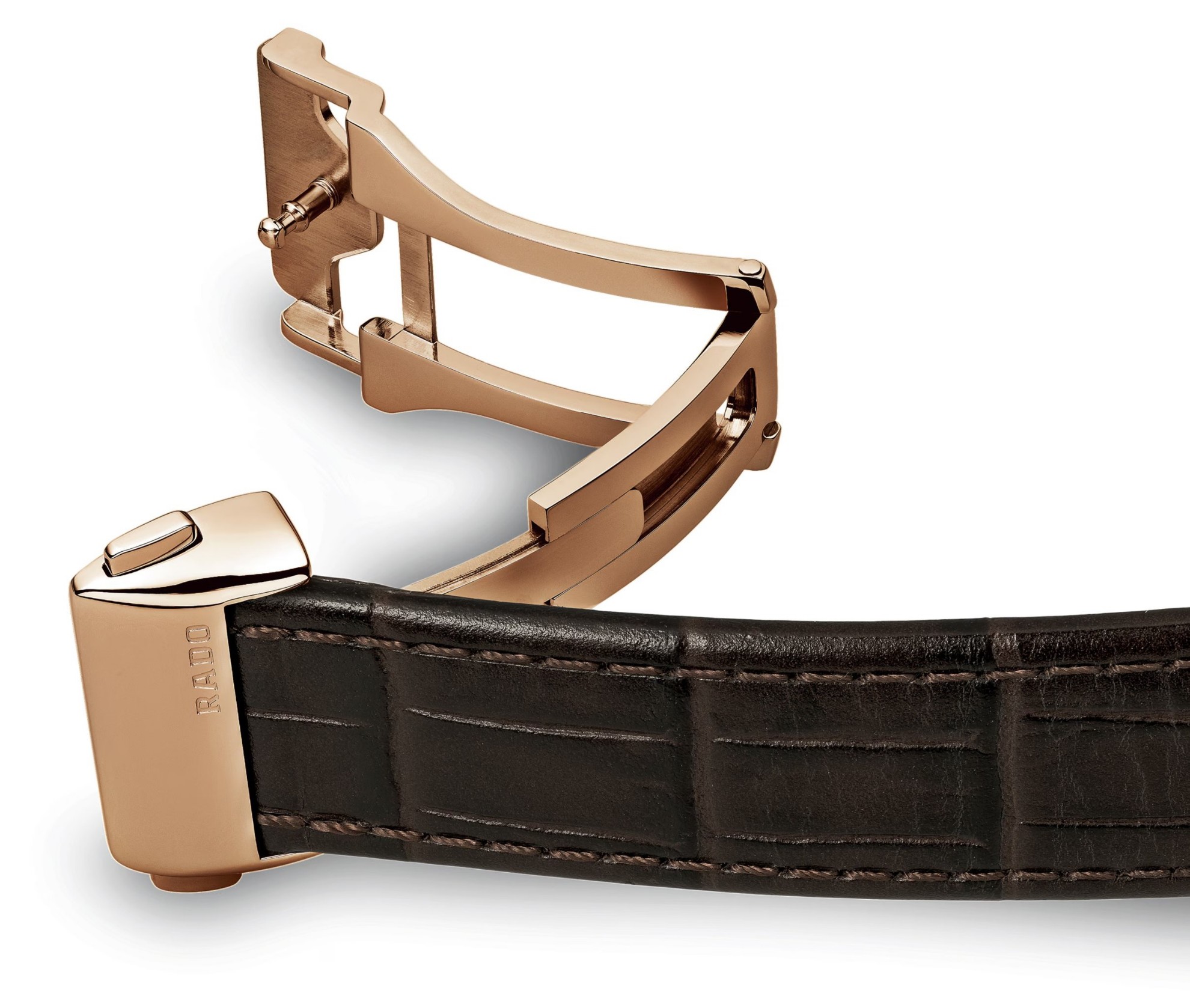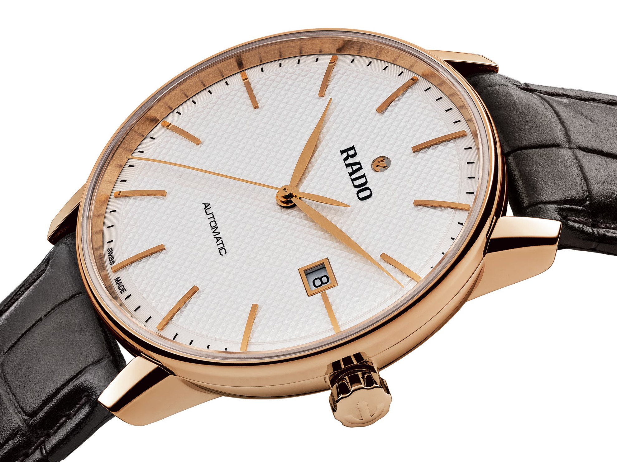 Rado Coupole Classic Automatic R22877025 sú pánske elegantné automatické hodinky na hnedom koženom remienku s preklápacou sponou. Puzdro s PVD úpravou vo farbe ružového zlata má priemer 41 milimetrov. Biely číselník zdobený gilošou s dátumovkou na tretej hodine je chránený zafírovým sklíčkom s obojstrannou antireflexnou vrstvou. Priehľadné viečko umožňuje pohľad na mechanický strojček dekorovaný ženevskými pruhmi. Tento mechanický strojček R763 (03.763.532) s automatickým náťahom a rezervou chodu 80 hodín disponuje funkciou hackingu (zastavenie sekundovej ručičky pri vytiahnutí korunky do krajnej polohy). Vďaka použitiu antimagnetického vlásku zotrvačky Nivachron™ z titánovej zliatiny je vysoko odolný voči vplyvom magnetického poľa. Na dosiahnutie čo najvyššej možnej presnosti je stroj testovaný v piatich pozíciách. S vodotesnosťou 5 ATM sú hodinky odolné proti dažďu a pri sprchovaní.