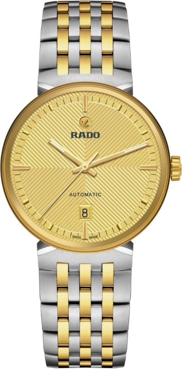 Rado Florence Automatic R48903253 sú automatické unisex hodinky klasického štýlu s oceľovým puzdrom s priemerom 39 milimetrov a oceľovým bicolor náramkom s motýlikovou sponou. Časti náramku a puzdra sú opatrené povrchovou PVD úpravou vo farbe žltého zlata. Číselník v zlatej farbe s reliéfnym vzorom a dátumovkou na šiestej hodine je chránený tzv. „edge to edge“ zafírovým sklom s metalizovaným rámčekom, ktoré siaha až k úplnému okraju puzdra. Ručičky sú potiahnuté luminiscenčnou vrstvou Super-LumiNova®, ktorá garantuje perfektnú čitateľnosť za zhoršených svetelných podmienok. Priehľadné viečko ponúka pohľad na mechanický strojček R763 (03.763.990) s automatickým náťahom a rezervou chodu 80 hodín. Strojček disponuje funkciou hackingu (zastavenie sekundovej ručičky pri vytiahnutí korunky do krajnej polohy) a je možné ho v prípade potreby naťahovať aj ručne. Vďaka použitiu antimagnetického vlásku zotrvačky Nivachron™ z titánovej zliatiny je tento kaliber vysoko odolný voči vplyvom magnetického poľa. Na dosiahnutie čo najvyššej možnej presnosti je stroj testovaný v piatich pozíciách. S vodotesnosťou 5 ATM sú hodinky odolné proti dažďu a pri sprchovaní.