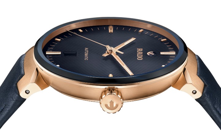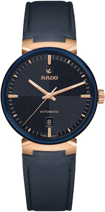 Rado Florence Automatic R48905205 sú automatické unisex hodinky elegantného štýlu s oceľovým puzdrom s priemerom 39 milimetrov a modrým koženým remienkom s tŕňovou sponou. Puzdro a spona má povrchovú PVD úpravu vo farbe ružového zlata ladiacu s indexmi a ručičkami. Číselník v tmavo modrej farbe s reliéfnym vzorom a dátumovkou na šiestej hodine je chránený tzv. „edge to edge“ zafírovým sklom s metalizovaným rámčekom, ktoré siaha až k úplnému okraju puzdra. Ručičky sú potiahnuté luminiscenčnou vrstvou Super-LumiNova®, ktorá garantuje perfektnú čitateľnosť za zhoršených svetelných podmienok. Priehľadné viečko ponúka pohľad na mechanický strojček R763 (03.763.990) s automatickým náťahom a rezervou chodu 80 hodín. Strojček disponuje funkciou hackingu (zastavenie sekundovej ručičky pri vytiahnutí korunky do krajnej polohy) a je možné ho v prípade potreby naťahovať aj ručne. Vďaka použitiu antimagnetického vlásku zotrvačky Nivachron™ z titánovej zliatiny je tento kaliber vysoko odolný voči vplyvom magnetického poľa. Na dosiahnutie čo najvyššej možnej presnosti je stroj testovaný v piatich pozíciách. S vodotesnosťou 5 ATM sú hodinky odolné proti dažďu a pri sprchovaní.