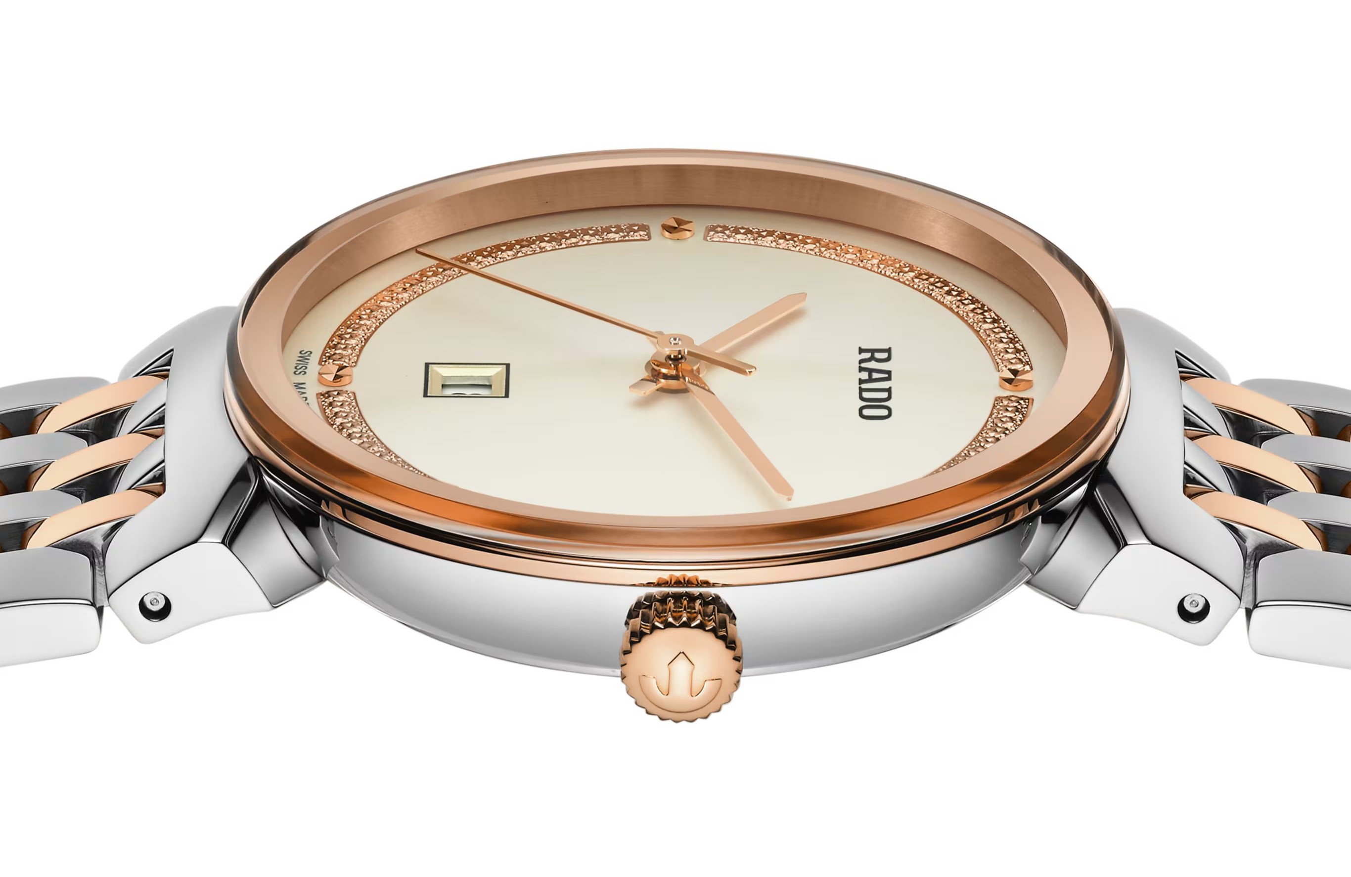 Rado Florence Classic R48913403 sú dámske batériové hodinky klasického štýlu s oceľovým puzdrom s priemerom 30 milimetrov a oceľovým náramkom s motýlikovou sponou. Časti náramku a puzdra sú opatrené povrchovou PVD úpravou vo farbe ružového zlata. Číselník vo farbe šampaň zdobený trblietkami s dátumovkou na šiestej hodine je chránený tzv. „edge to edge“ zafírovým sklom s metalizovaným rámčekom, ktoré siaha až k úplnému okraju puzdra. Pohon hodiniek zaisťuje švajčiarsky quartzový strojček. S vodotesnosťou 5 ATM sú hodinky odolné proti dažďu a pri sprchovaní.