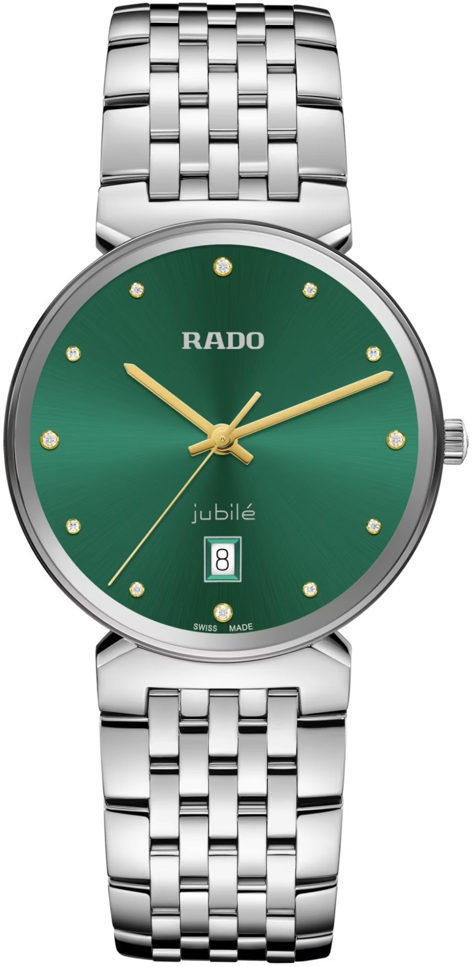 Rado Florence Classic Diamonds R48912773 sú batériové unisex hodinky klasického štýlu s oceľovým puzdrom s priemerom 38 milimetrov a oceľovým náramkom s motýlikovou sponou. Zelený číselník s efektom slnečného brusu, dátumovkou a 12 diamantmi je chránený tzv. „edge to edge“ zafírovým sklom s metalizovaným rámčekom, ktoré siaha až k úplnému okraju puzdra. Pohon hodiniek zaisťuje švajčiarsky quartzový strojček. S vodotesnosťou 5 ATM sú hodinky odolné proti dažďu a pri sprchovaní.