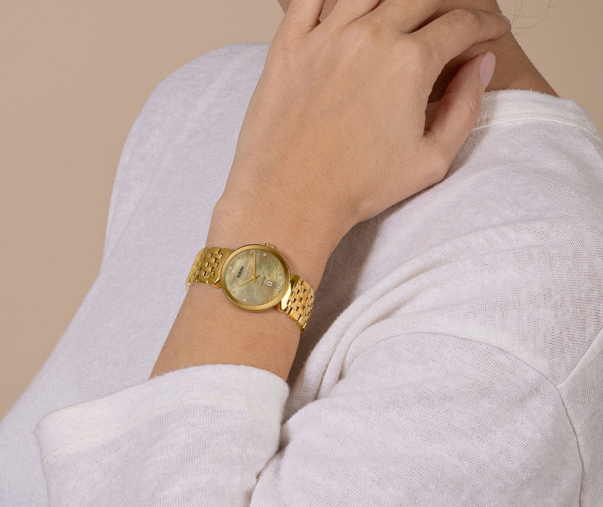 Rado Florence Classic Diamonds R48915903 sú dámske batériové hodinky klasického štýlu s oceľovým puzdrom s priemerom 30 milimetrov a oceľovým náramkom s motýlikovou sponou. Náramok aj puzdro sú opatrené povrchovou PVD úpravou vo farbe žltého zlata. Zlatý perleťový číselník s dátumovkou zdobený 12 diamantmi je chránený tzv. „edge to edge“ zafírovým sklom s metalizovaným rámčekom, ktoré siaha až k úplnému okraju puzdra. Pohon hodiniek zaisťuje švajčiarsky quartzový strojček. S vodotesnosťou 5 ATM sú hodinky odolné proti dažďu a pri sprchovaní.